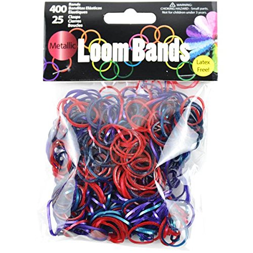 Touch of Nature 400 Value Pack Loom Bands, Assorted, Includes 25 Plastic Claps, Teal/Plum/Dark Purple/Metallic