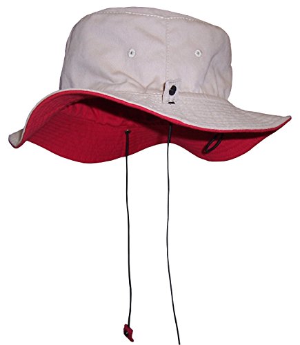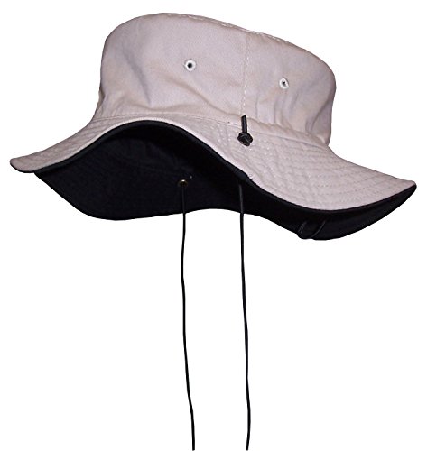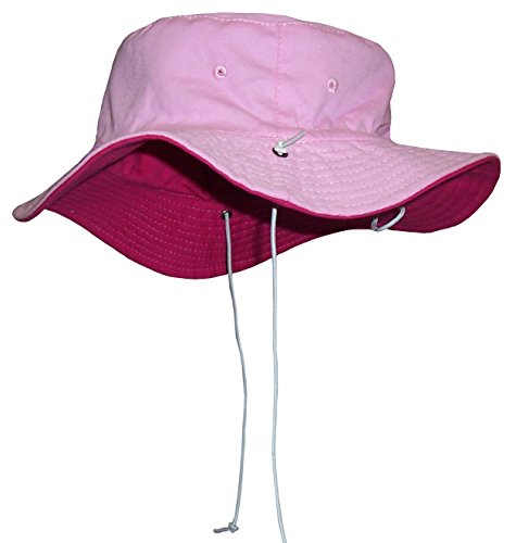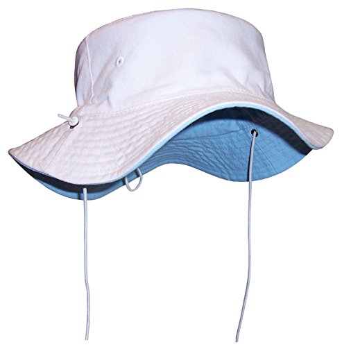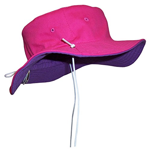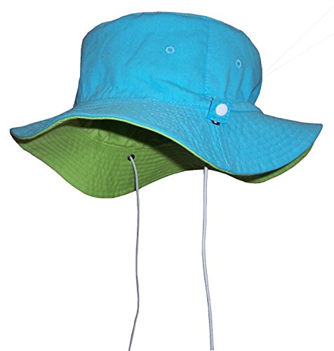 -. Binding : Apparel -. Brand : Sun Caps TM -. Color : Black -. Department : unisex-child -. Feature : Reversible 2 color and 3 sizes in one hat / Elastic adjustable draw cord allows for hat to fit 3 size ranges / 2 ply cotton twill with side air holes / Top stitched brim, brass river hole for ties to slide back and forth / Elastic shoe string ties are adjustable, older sizes have snaps on ties, younger have no snaps -. Model : 402 -. PackageQuantity : 1 -. ProductGroup : Apparel -. ProductTypeName : HAT -. Title : N'Ice Caps Unisex Kids Reversible And Adjustable Cotton Twill Aussie Hat
