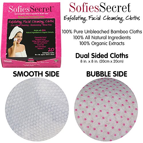 - EXFOLIATE: SofiesSecret 3 in 1 One Exfoliating Wipes, one side exfoliates your skin with deep cleaning action, the other side is a honeycomb texture which removes residue and moisturizes your skin.