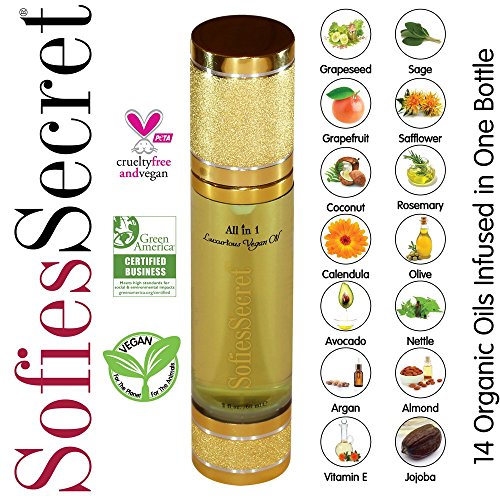 - HEAL & NOURISH: SofiesSecret Luxurious Vegan Oil is infused with 14 different oils to help moisturize, hydrate, nourish, condition and soothe your Hair, Skin, Face, Scalp, Cuticle, Nails and Feet.