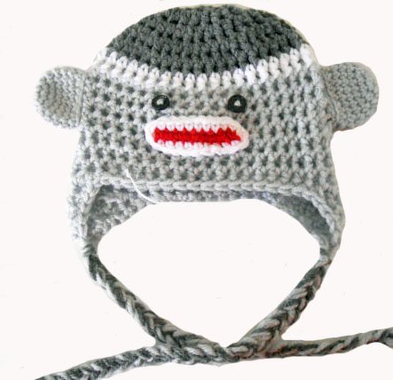 -. Title : Sweet Lullabiez Handmade Gray Sock Monkey Beanie / Hat