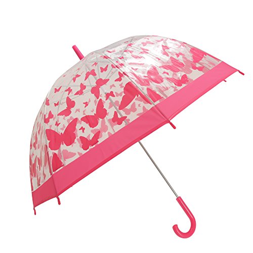 Product DescriptionLadies clear walking umbrella with choice of butterfly or dragonfly patterns. Plastic handle and frame tips. Umbrella secured by snap fastener when not in use. Diameter: 33.5in, Length: 31in.0