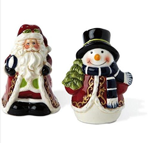 Old World Santa And Snowman Salt And Pepper Shaker Figurine Set