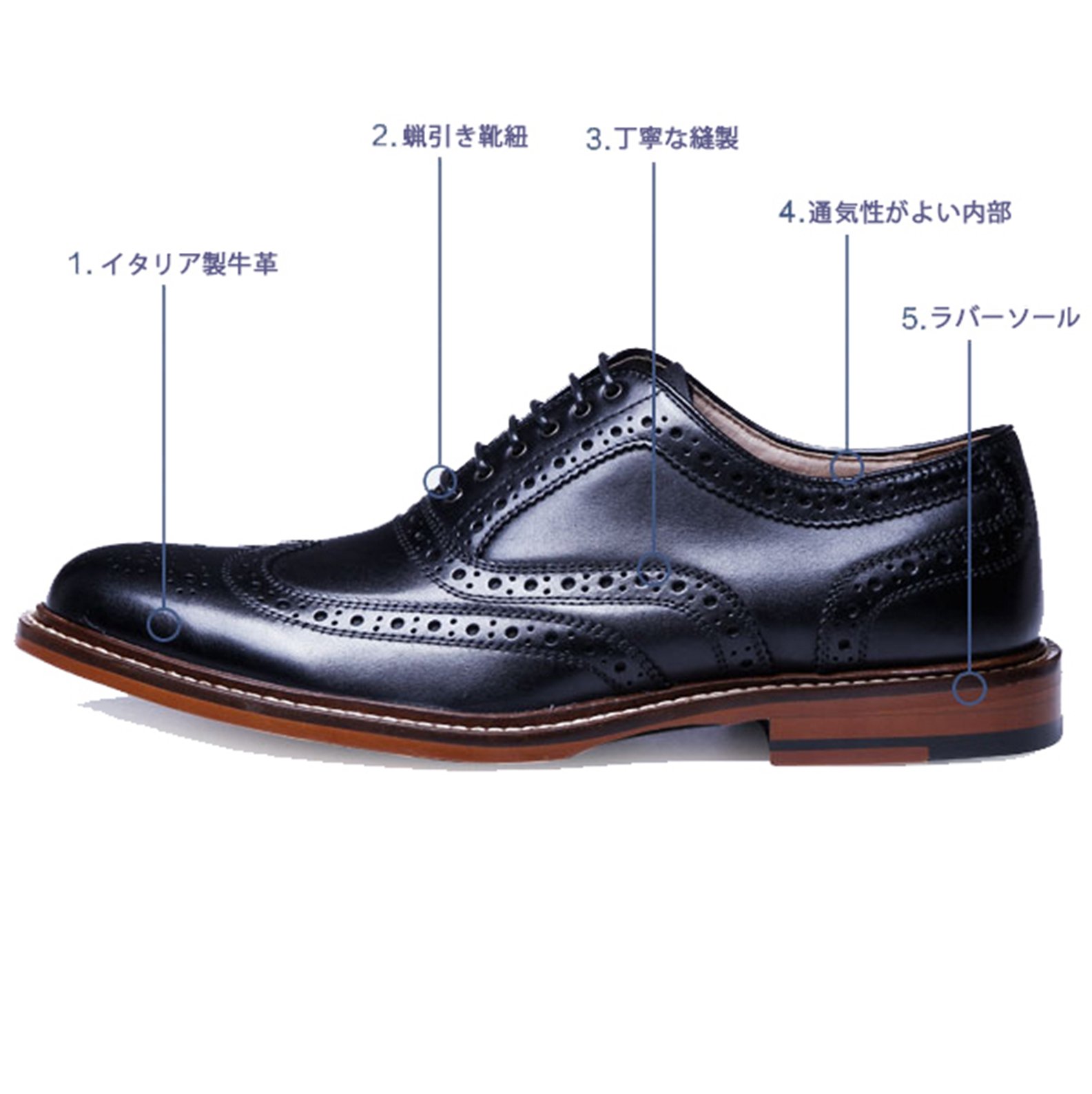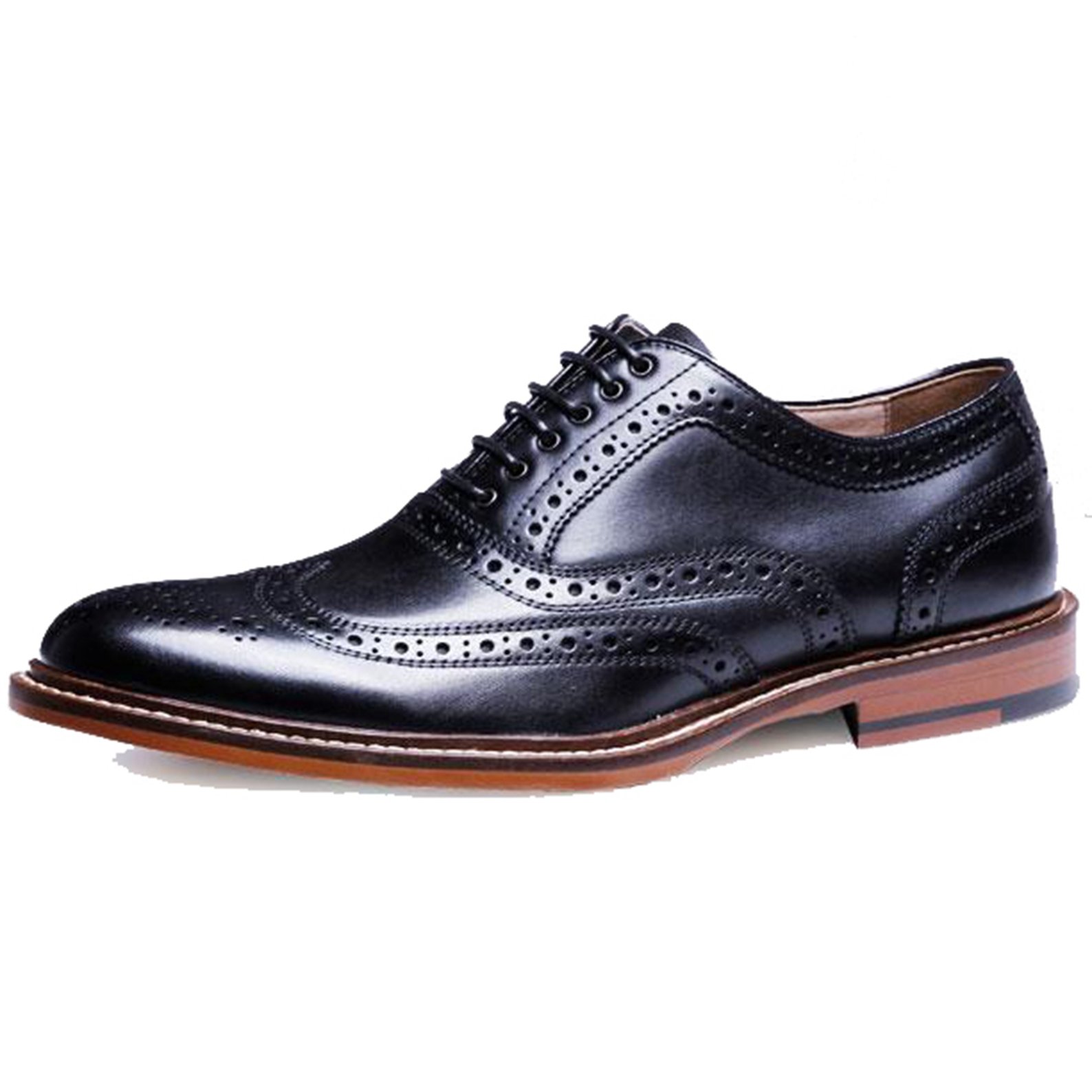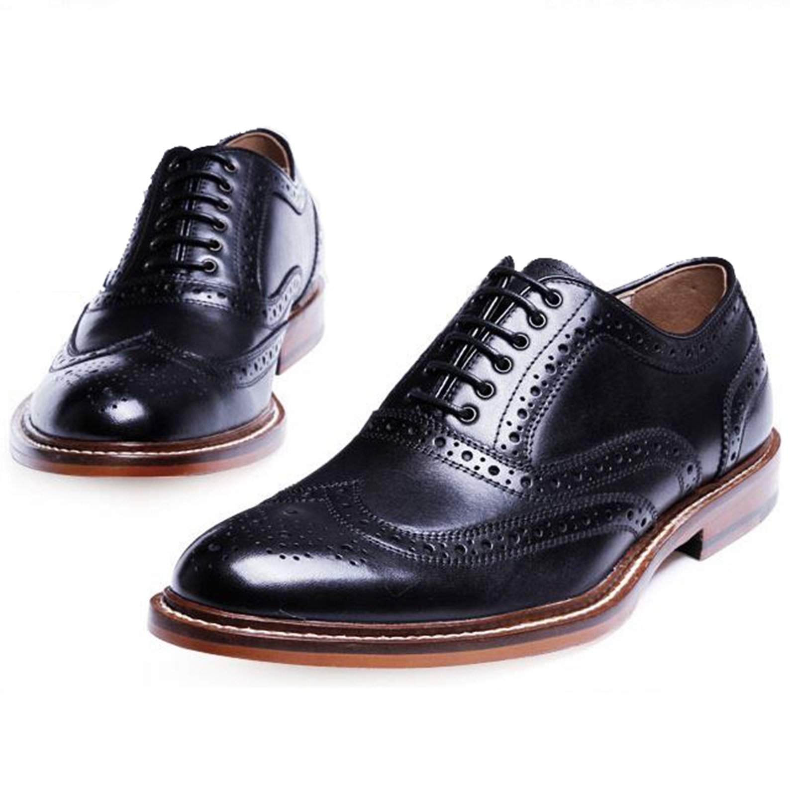 Easy to wear Round toe wing tip men's shoes.