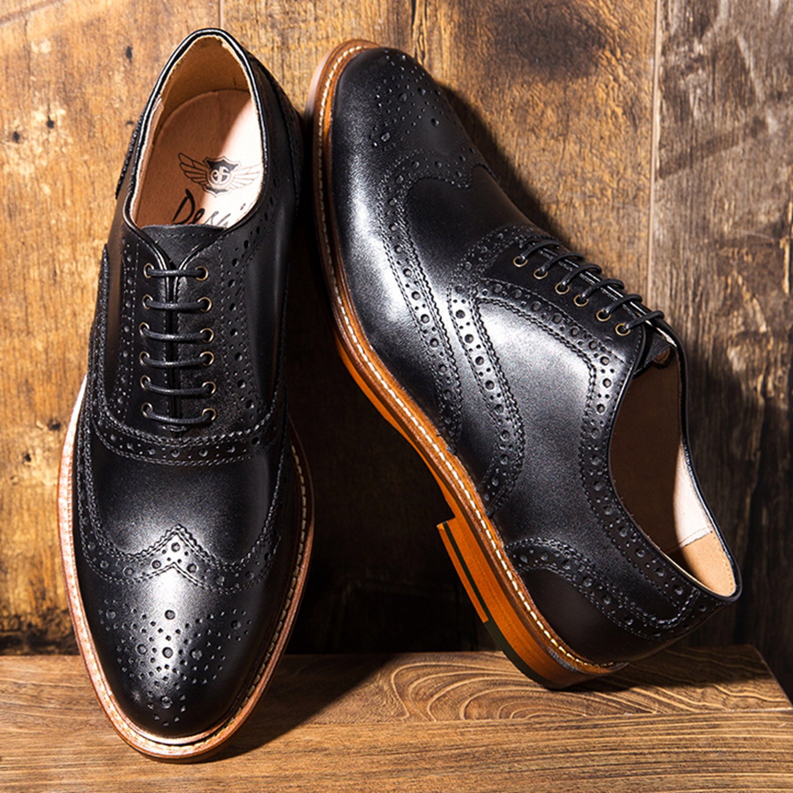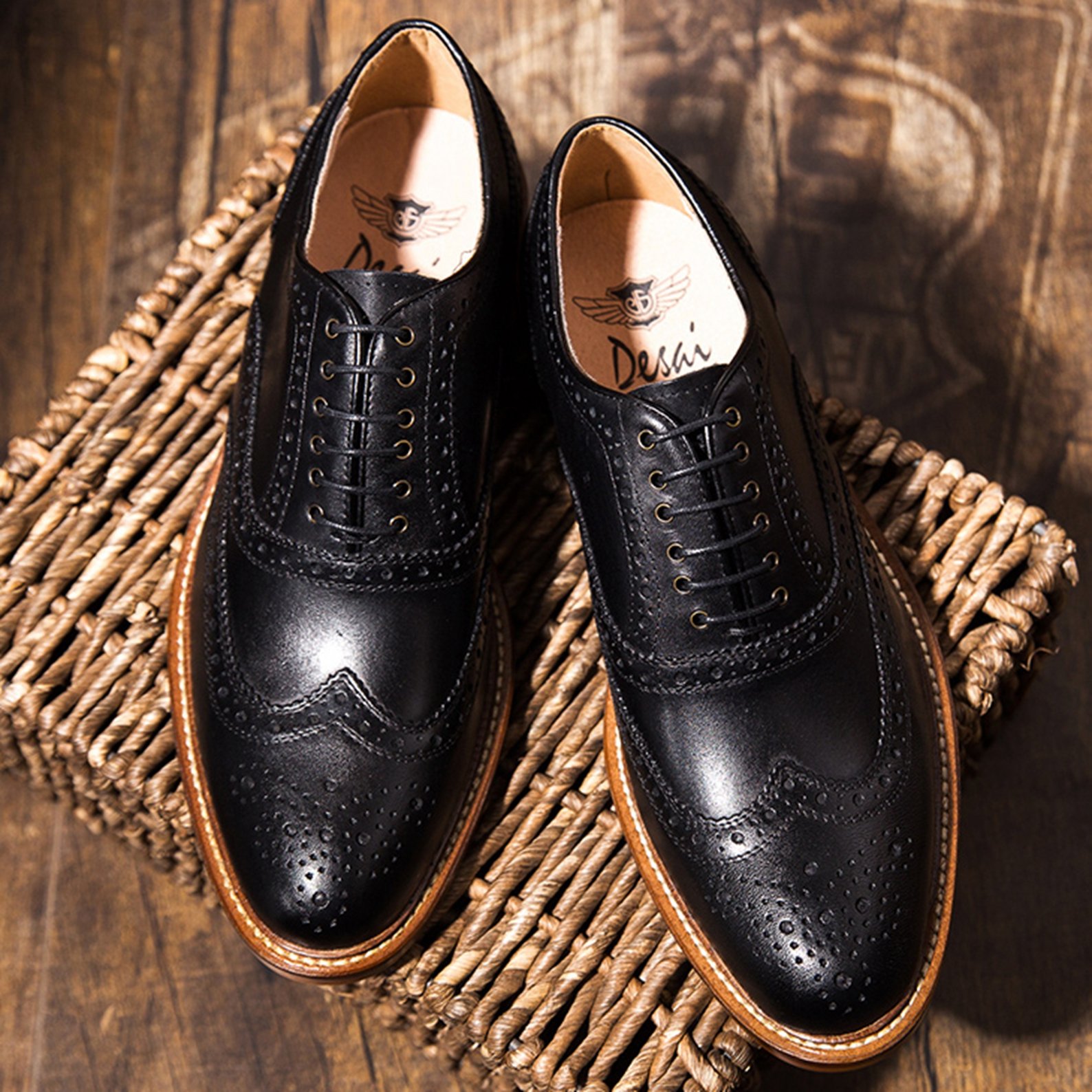 Clear wing tip style, grain pattern sole is fashionable high.