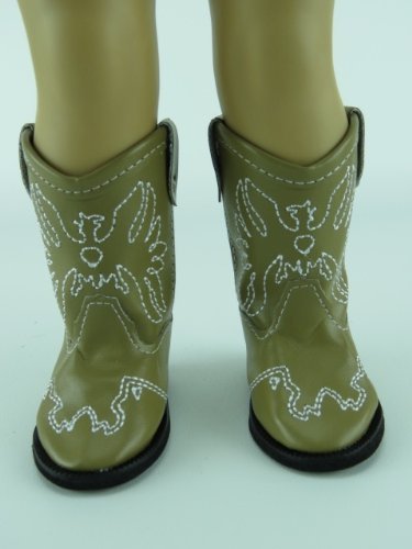 -. Feature : Tan American Eagle Cowgirl Boots / Embroidered Eagle on the front of boots. / Perfect for any 18" Cowgirl! / Great quality and very well detailed / Fits 18" American Girl Dolls and others. Doll not included
