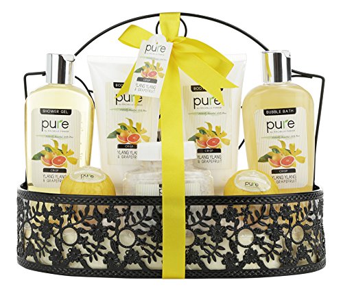 -. Title : Spa Gift Basket By PURE! Beautiful Metal Bath Basket Gifts for Women with Lush Bath Bombs, Bubble Bath infused with Grapefruit Essential Oil!Natural Spa Baskets for Women Spa Basket Gift Bath Sets