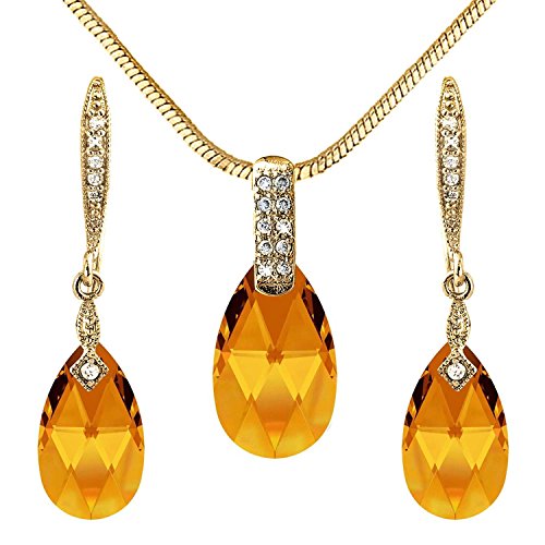 -. Binding : Jewelry -. Brand : Crystal Elegance UK -. Department : womens -. Feature : Pendant chain measures approximately 40cm (drop down length 20cm). / Gold topaz / amber color pendant crystal measures 2cm x 1.5 approx. Earring crystals are smaller (1.5cm x 1.5cm) / Earrings have a drop down length of 4cm (from top to bottom). Comes complete with matching gold crystal bracelet (1cm x 20cm approx), fits all sizes. / Elegant gold tone and made using swaroski range crystals. / Intense copper colour as pictured set off by matching gold colour earring bails and pendant holder. -. Label : Crystal Elegance UK -. Manufacturer : Crystal Elegance UK -. Model : amberdrops1set -. MPN : amberdrops1set -. PartNumber : amberdrops1set -. ProductGroup : Jewelry -. ProductTypeName : FASHIONNECKLACEBRACELETANKLET -. Publisher : Crystal Elegance UK -. Studio : Crystal Elegance UK -. Title : Copper Color Crystal Pear Drops Jewelry Set Swarovski Components - Necklace Earring Xmas Gift For Her