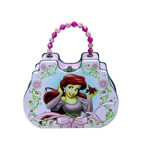 Studio : Disney Publisher : Disney Binding : Toy Product Description The Little Mermaid fans will love our Ariel Tin Purse! This Little Mermaid Tin Bag Carry-all is great for dress up as well as storage of small toys and other girls accessories! Size is 7 x 4 x 3-3/4 inch height with beaded handle! 0