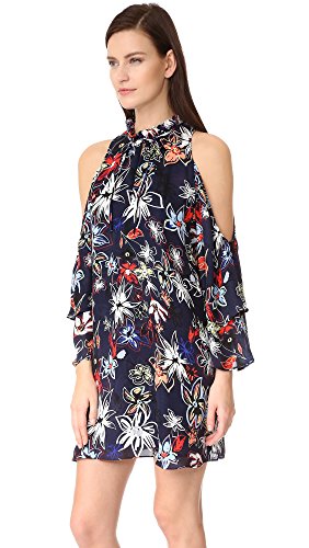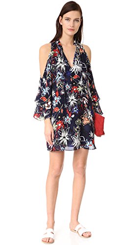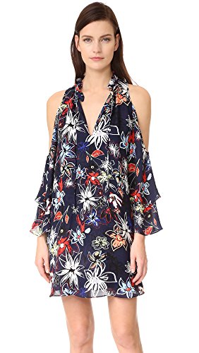 Product Description3/4 sleeve, cold shoulder mini dress. Printed silk. Made in china.0