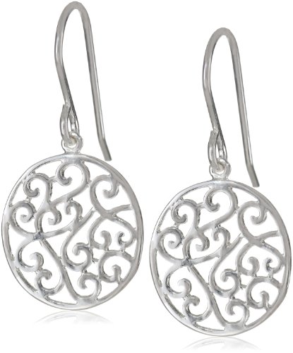 -. Title : Sterling Silver Filigree Round Drop Earrings