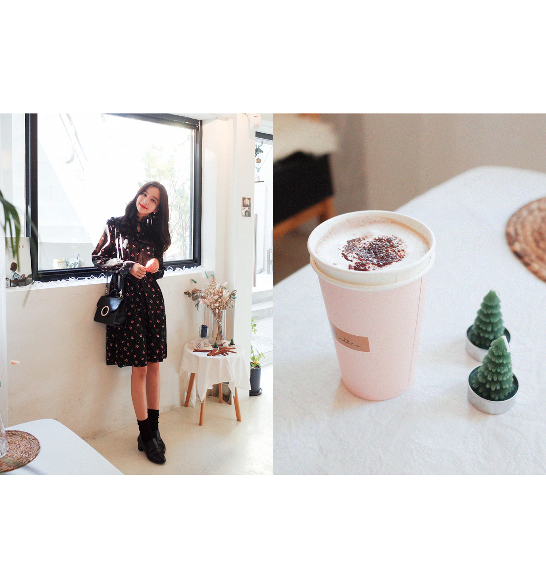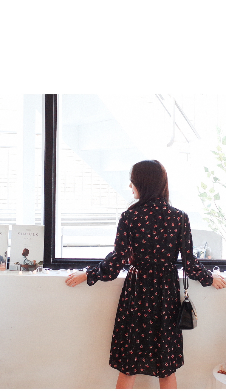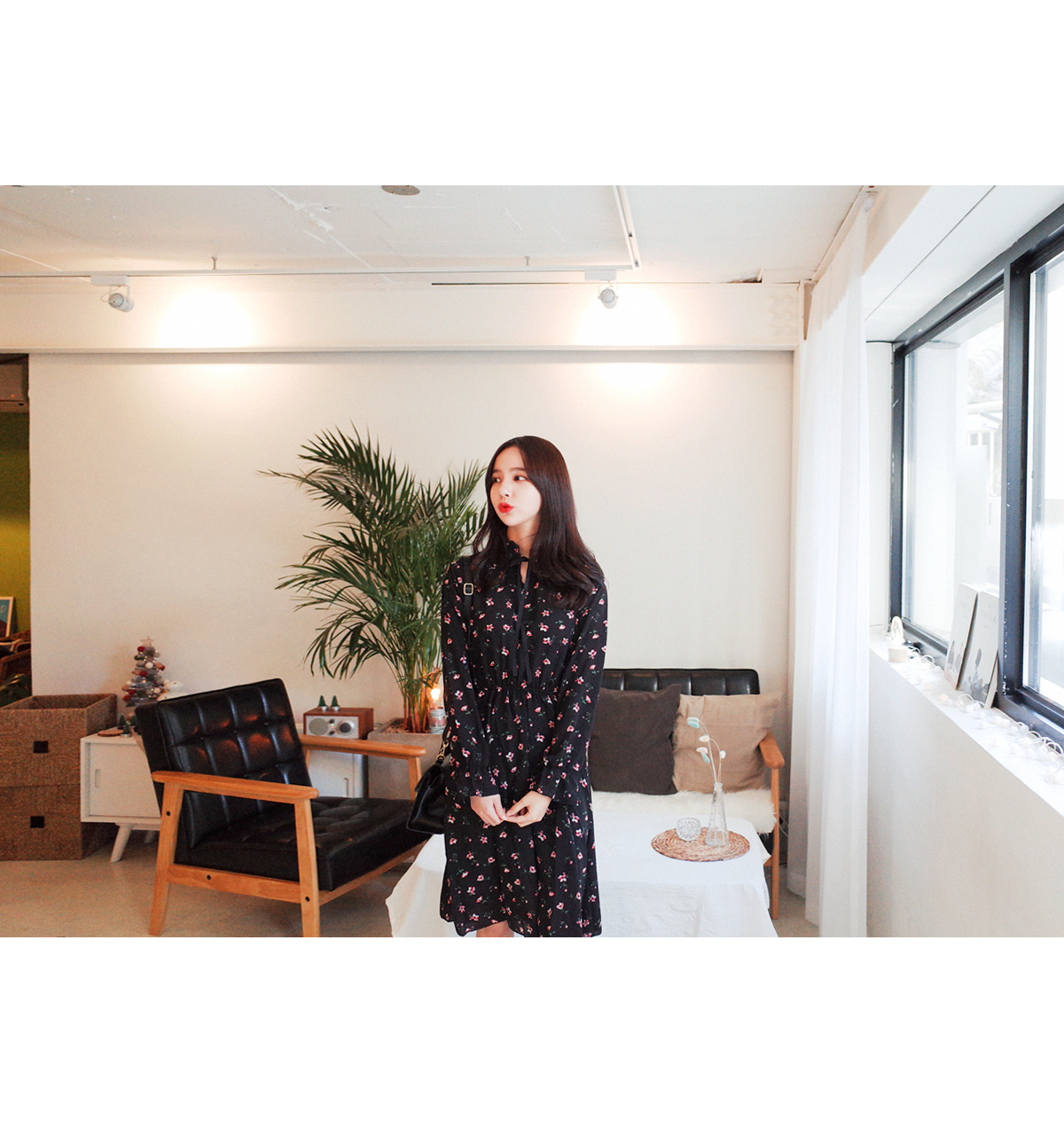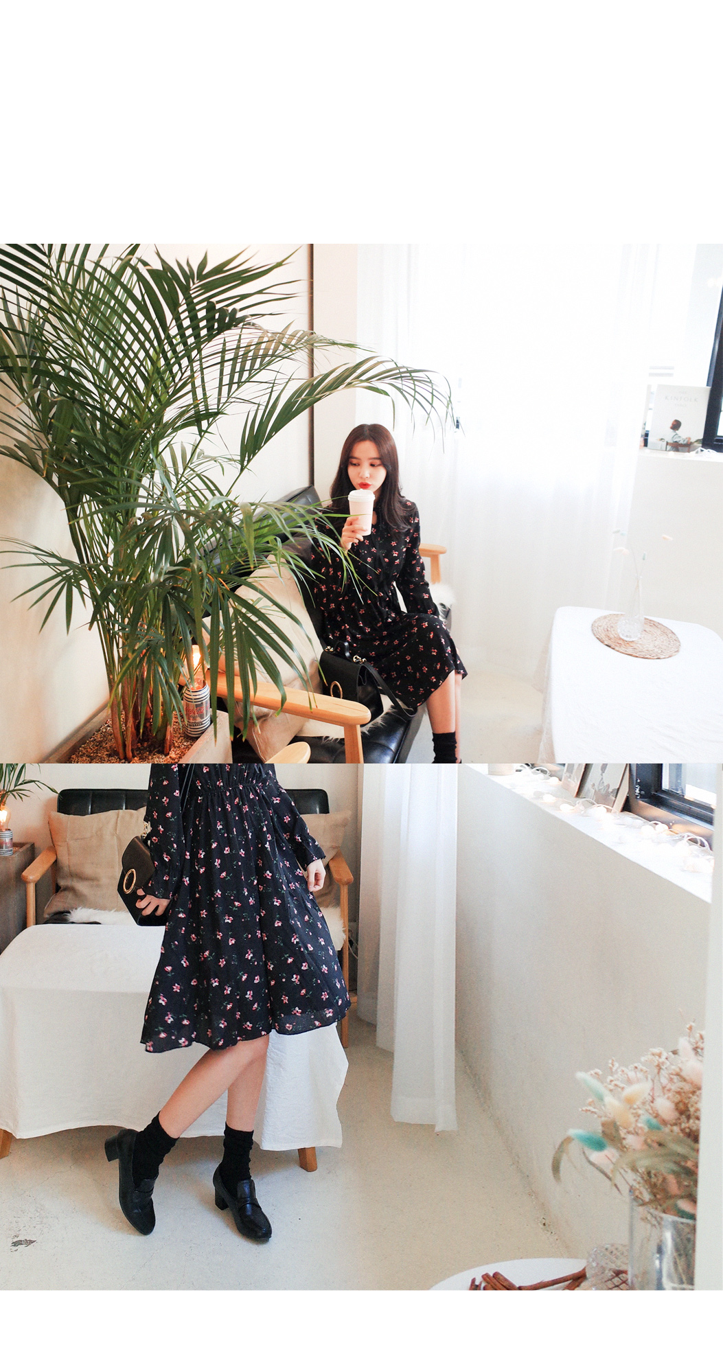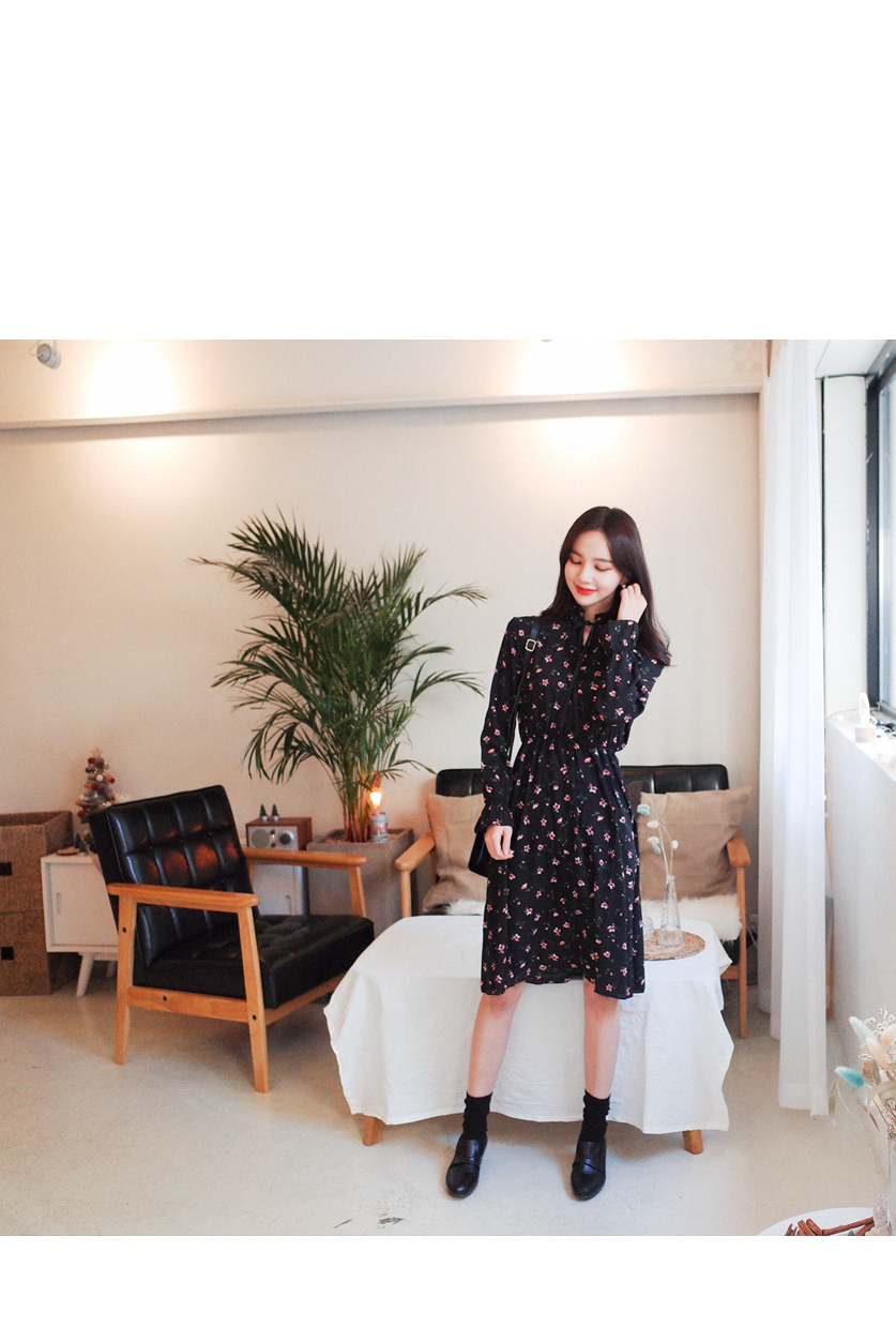 잔잔한 패턴이 소녀스러운 원피스입니다
