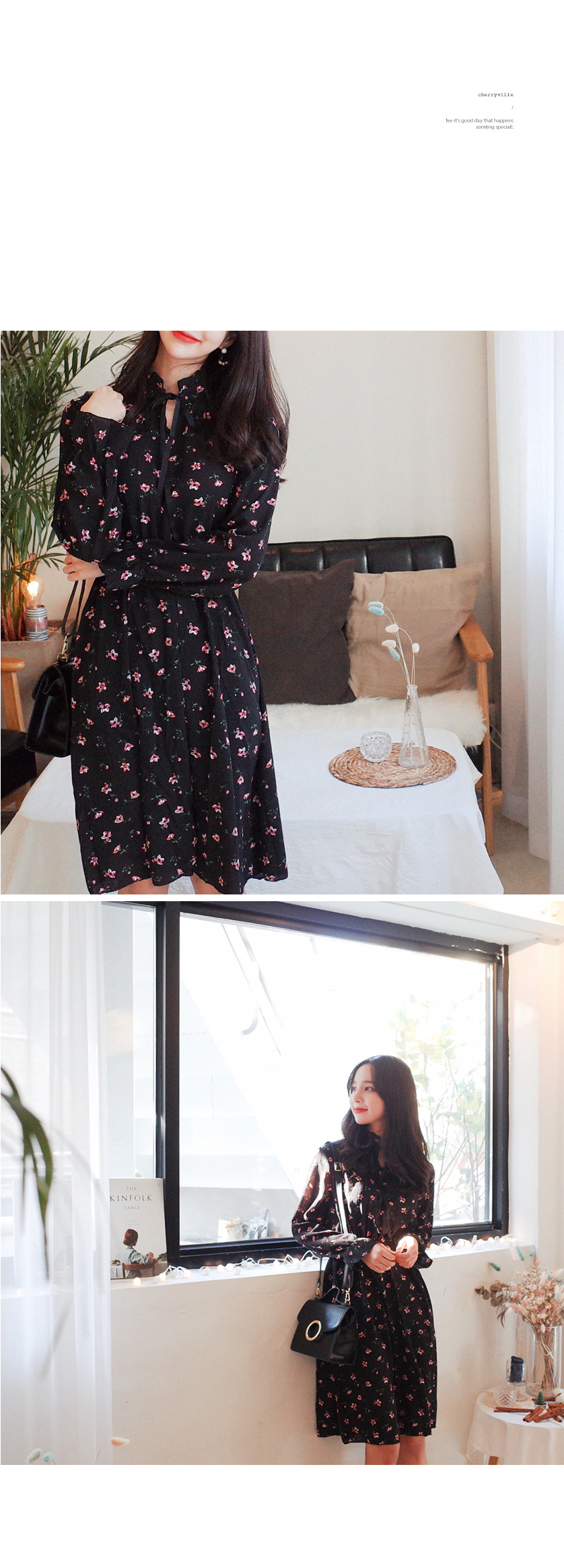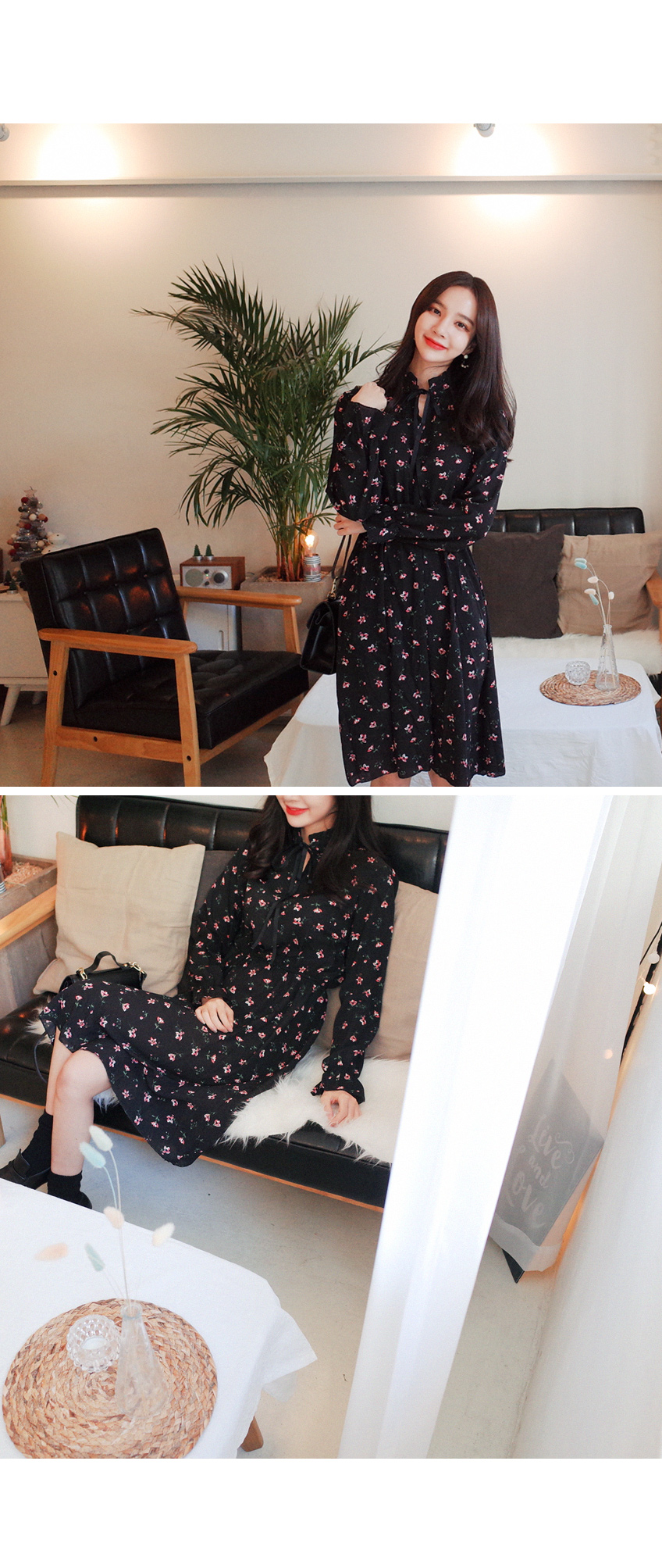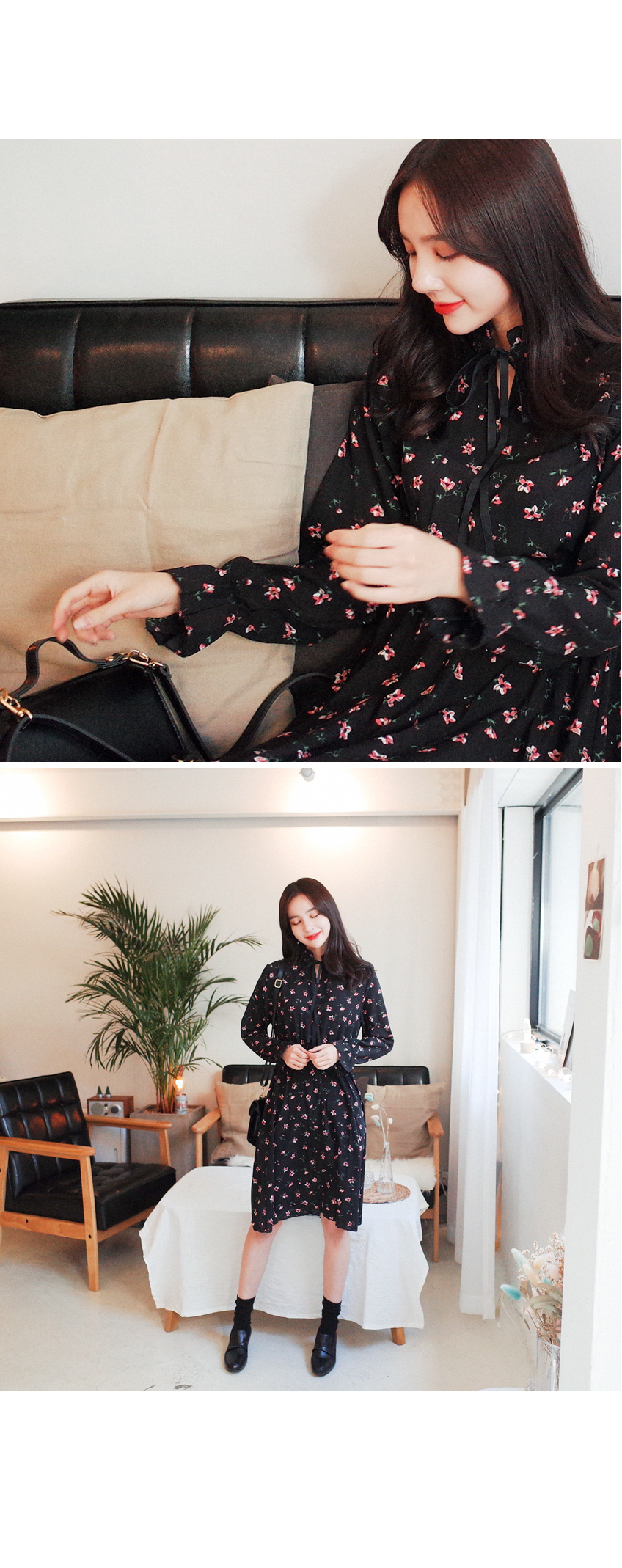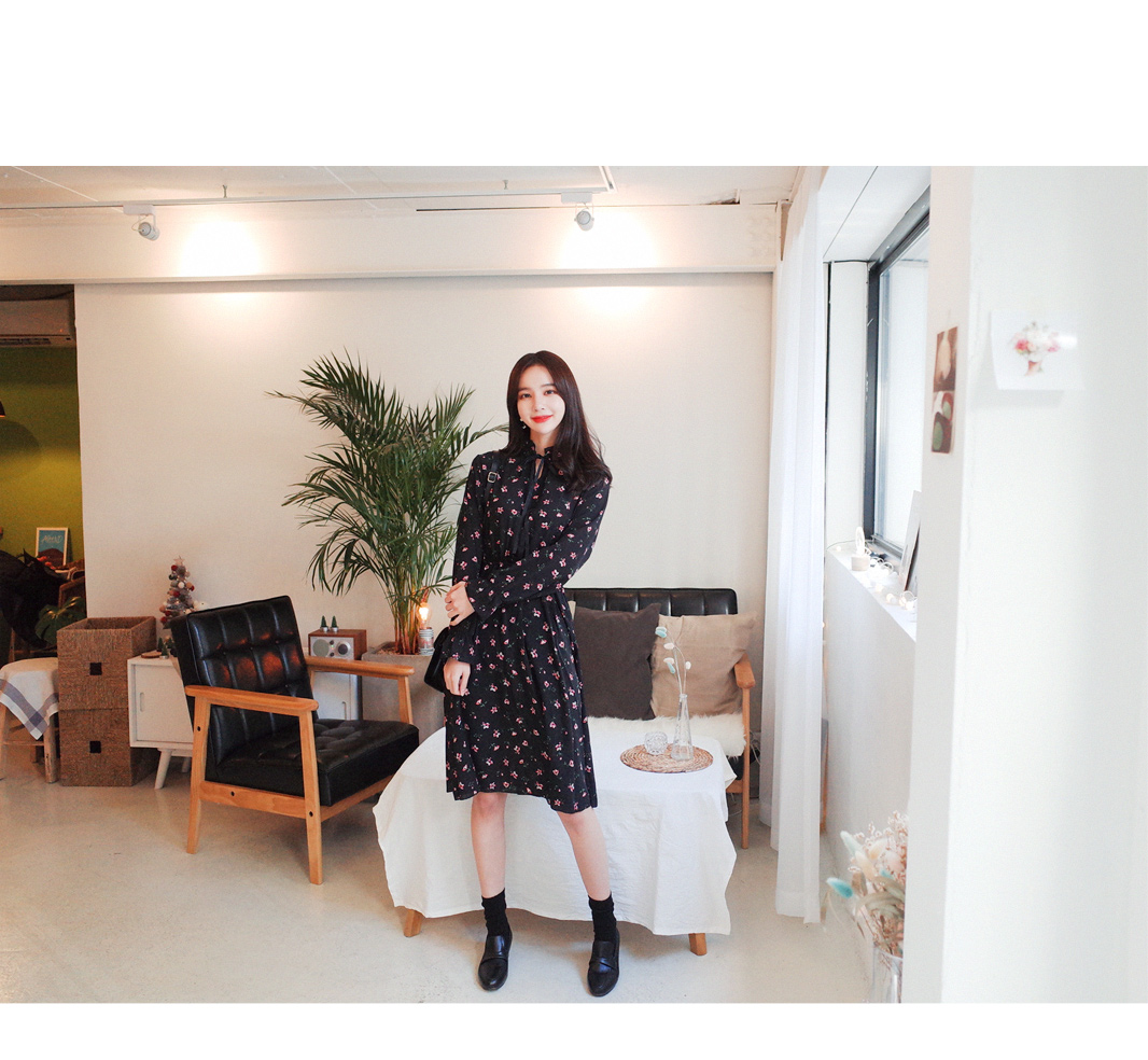 잔잔한 패턴이 소녀스러운 원피스입니다