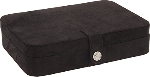 - Interior features mirror, shirred catch pocket and 24 equal sections for storing earrings and rings.