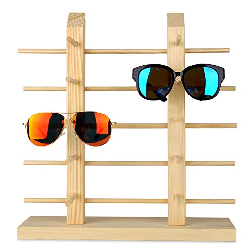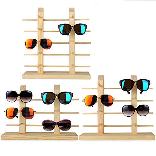 Solid Wood Glass Display Holder Sunglass Display Holder Wood Glass Display Rack Double Linen Glass Showcase (5-Layer)