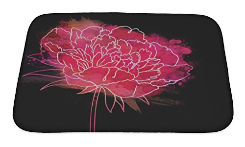 Gear New No Slip Microfiber Memory Foam Beautiful Peonies Flower Watercolor Painting Bath Rug Mat, 24" X 17"
