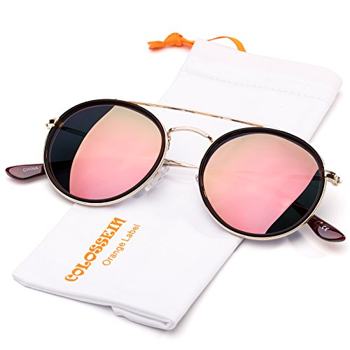 COLOSSEIN Women Retro Fashion Sunglasses Metal Frame Polarized Round Lens, UV400