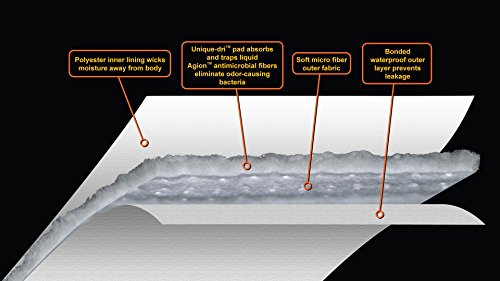 -. Feature : Pack of three pairs. / Light Absorbency - Holds up to 3 ounces of liquid. / Mid Rise Brief style. / 92% Nylon, 8% Spandex Body. 86% Polyester, 14% Polyurethane Pad. / Model# HH006-3PK