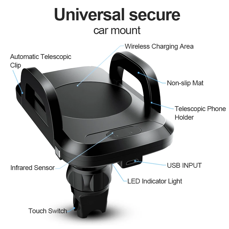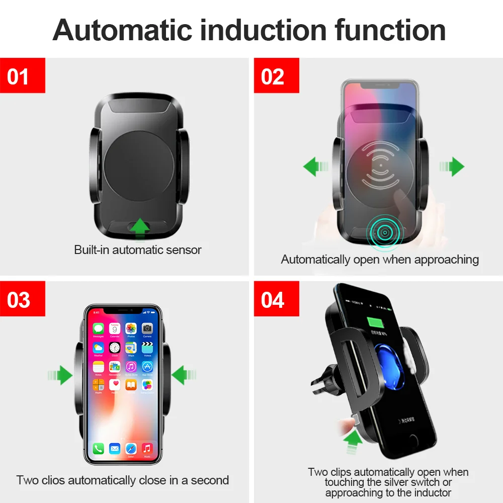 Function 2:Air Vent Car Holder, Fast Wireless Charger,Automatic Infrared Sensor