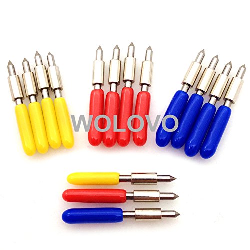 Studio : wolovo Publisher : wolovo Binding : Electronics Product Description Features: Made of Cemented Carbide. High quality and Extra long life. Specifications: Standard Vinyl blades for Graphtec High quality and extra long life Approx. Diameter: 1.5mm, Length: 24mm Package with a Safe Plastic Box: 5pc/case, 3 X case Angle: 30/45/60º (We also have other angles,pls check in our stock!) Package Included: 5pcs 30º Cutting Plotter Blades 5pcs 45º Cutting Plotter Blades 5pcs 60º Cutting Plotter Blades 0
