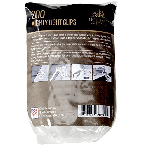 Holiday Joy- 200 Mighty Clip Lights - Quick & Easy Installation of Christmas Lights on Shingles & Gutters - Made in USA (200 Pack)