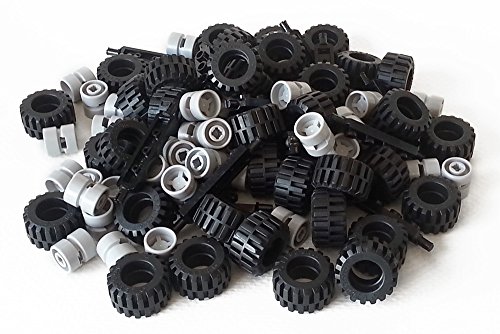 -. Feature : Building Bricks and Parts made 20 complete wheel assemblies / 20 Four Stud Wide Black Axles / 40 Black Rubber Wheels (21 Millimeters in Diameter) / 40 Light Bluish Gray Wheel Hubs (11 Millimeters in Diameter) / Sold LOOSE Without Retail Packaging