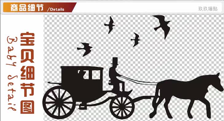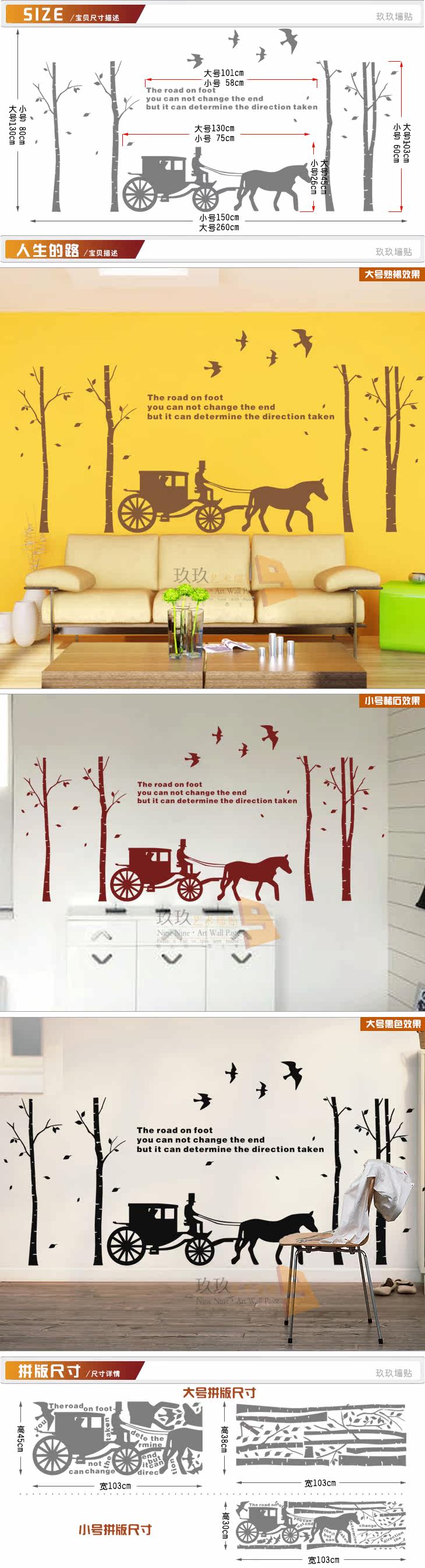 绿荫马车树英文字小鸟客厅电视墙酒店装饰欧式贴画贴纸