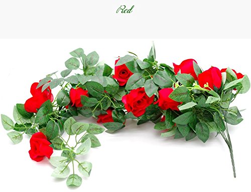 Ao blare 2 bunch 39 Inch Artificial Flowers Silk Flower Artificial Rose Garland Green Leaf Vine Home Wall Party Decor Wedding Garden (Red)