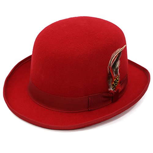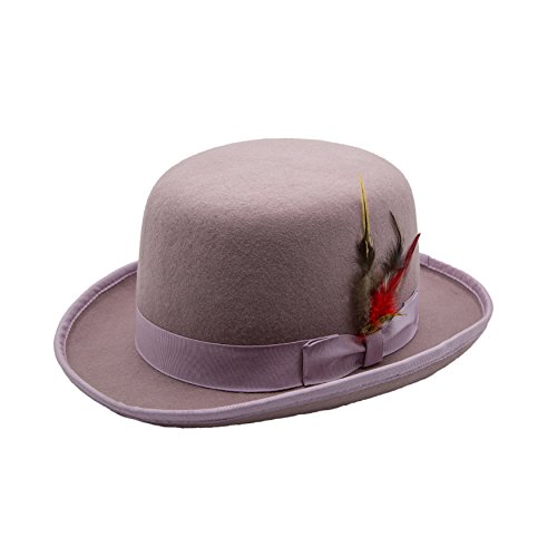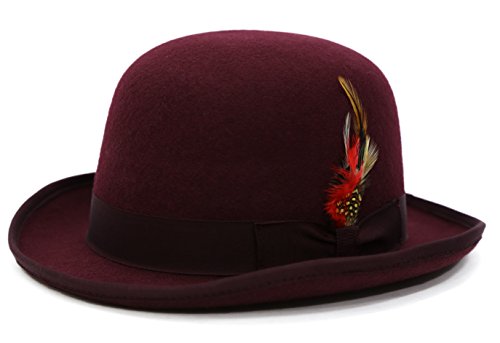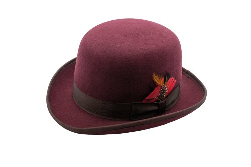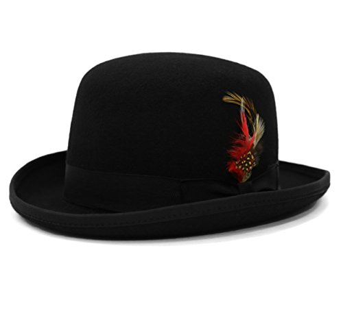 Binding : Apparel Product Description This sophisticated, traditional English Bowler / Derby hat by Suit Pros will add a timeless style to any outfit. Constructed of 100 percent wool felt, this hat is finished with a grosgrain ribbon trim, a feather accent and has a fully lined plush interior. Great for any distinguished gentlemans wardrobe or for dressing up in costume like your favorite character such as Charlie Chaplin or Alex DeLarge from the movie A Clockwork Orange. 0
