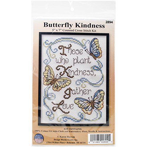 Tobin 14 Count Butterfly Kindness Mini Counted Cross Stitch Kit, 5" by 7"