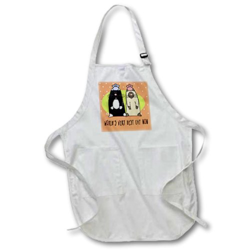 3dRose apr_33981_2 World S Best Cat Mom Cute Cartoon Kittens Pets Animals-Medium Length Apron, 22 by 24-Inch, with Pouch Pockets