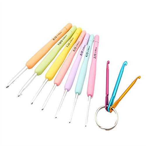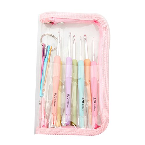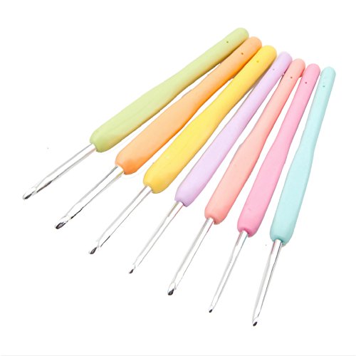 7 Pcs Crochet Hooks Set One Bonus accessory Crafts Knitting Needles With Ergonomic Grip Soft Rubber TPR Handle in PVC Case