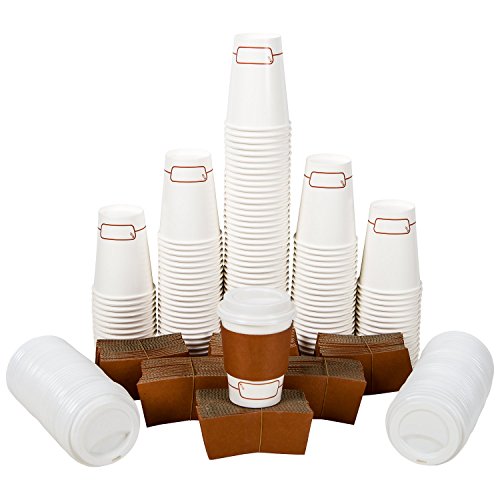120 Double Wall Disposable Paper Coffee Cups Set, 12 oz With Travel Lids and Sleeves, Eco-Friendly, Cups for Hot/Cold Drinks, Coffee Tea Chocolate, To Go Coffee Cup