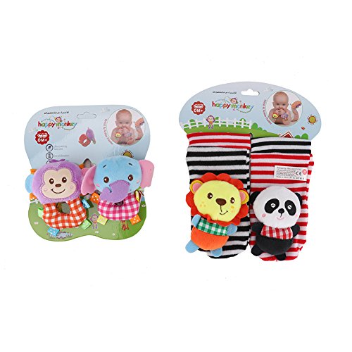 --Style: monkey and elephant wrist rattle,lion and panda foot finder sock.
