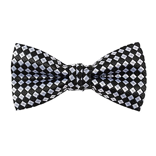 A bow tie consists of a ribbon of fabric tied around the collar of a shirt in a symmetrical manner so that the two opposite ends form loops. These pre-tied bow ties are ties in which the distinctive bow is sewn onto a band that goes around the neck and clips to secure. Our poly solid satin bow ties for kids offer the perfect blend of quality, affordability and style. Dress to impress for events or special occasions for a fraction of the cost.