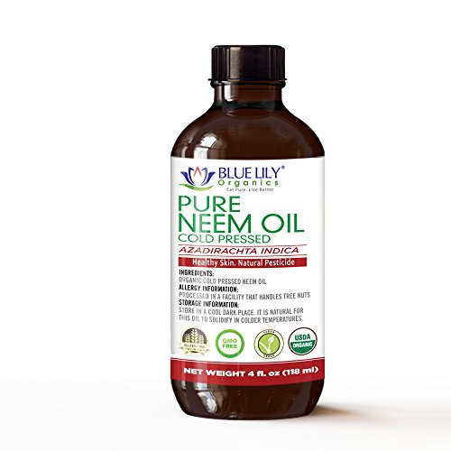 -. Title : Blue Lily Organics Neem Oil 8 Fl Oz, USDA Certified Organic, Cold Pressed, Unrefined, Premium Quality, 100% Pure. Excellent for Skin care, Hair care and in Garden for Natural Pest Control