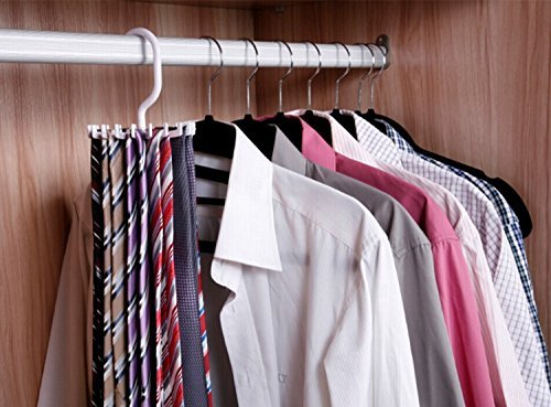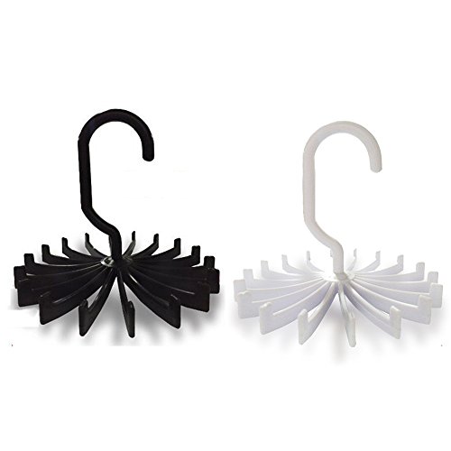 - Feature : Update Version:18 hooks,more larger than 20 hooks ,more convenient to hanger ties and other accessories. / Space-saving compact tie hanger is made of sturdy ABS plastic; Designed to balance perfectly. / Measures 5.3"x 5.3 "X 0.8", Comes in a set of 2 versatile hold clips with black and white color. / With its unique 360 degree rotation you will find it so easy to select your tie. Just turn it around and make your selection from your wrinkle free, neatly stored ties / Perfect for daily household use,also great for laundry shop,travel,Camping, beach, home,on business use.