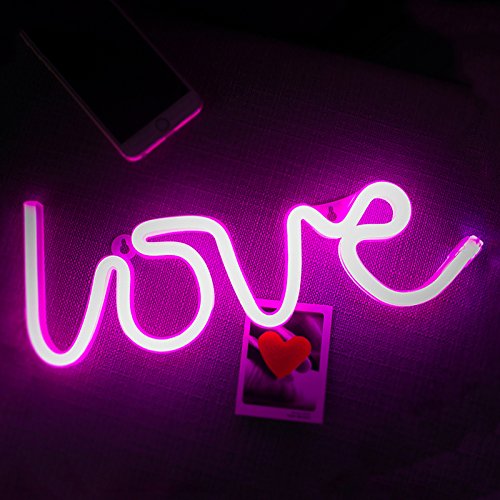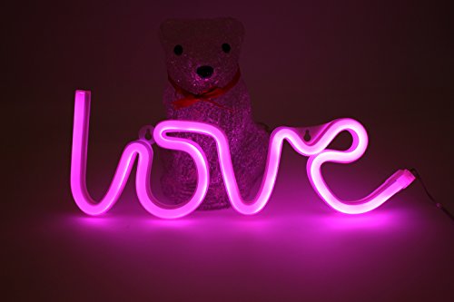 Pink Love Neon Signs LED Light 6×12 Inch USB or Battery Powered Handcrafted Visual Artwork For Girls Room Bedroom Wedding Birthday Party Kids Home Wall Teepee Decor