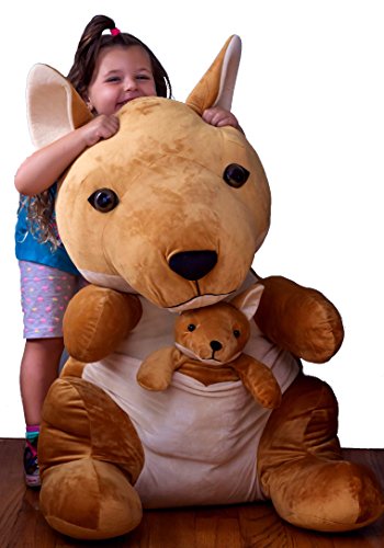 - Feature : Who wouldn't love this soft, cuddly adorable kangaroo with baby!! / Stands 3 ft tall!! / Cuddly and huggable / Children can hug or hold the kangaroo like other stuffed animals and can also use it as a giant pillow to sit or lie on. / This kangaroo is a wonderful companion for soft, cuddly play, and its presence can help children develop their imaginations through stories and relationships.