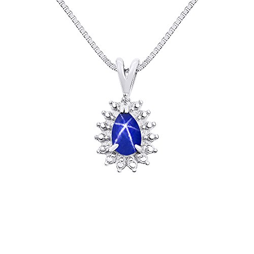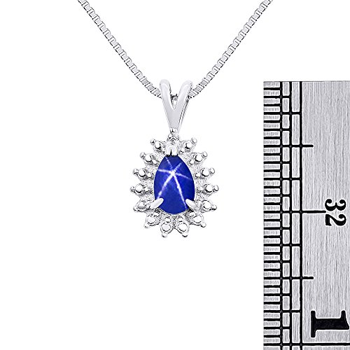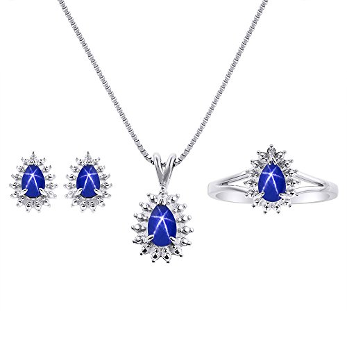 Brand, Seller, or Collection Name:Rylos Metal stamp:925-silver Metal:Sterling silver Gem Type:Star sapphire Minimum total gem weight:1.60 carats Setting:prong Chain:Box Chain Total metal weight:6.40 Grams Stone Weight:1.60 carats Model number:SL-SET#2LSW-FBA2 Stone shape:Pear Stone Creation Method:Simulated