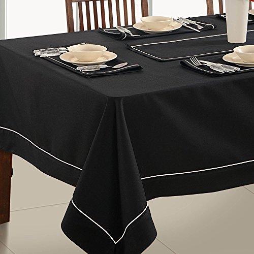 ShalinIndia Handmade Beauteous Black Cotton 6 Seater Rectangle Table Linen -Premium Cotton Fabric 60 X 90 Inch