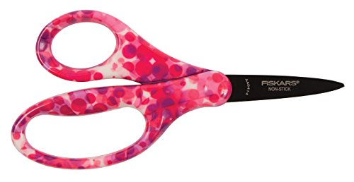 Fiskars 5 Inch Decorated Non-Stick Kids Scissors Pointed, Pink Dots