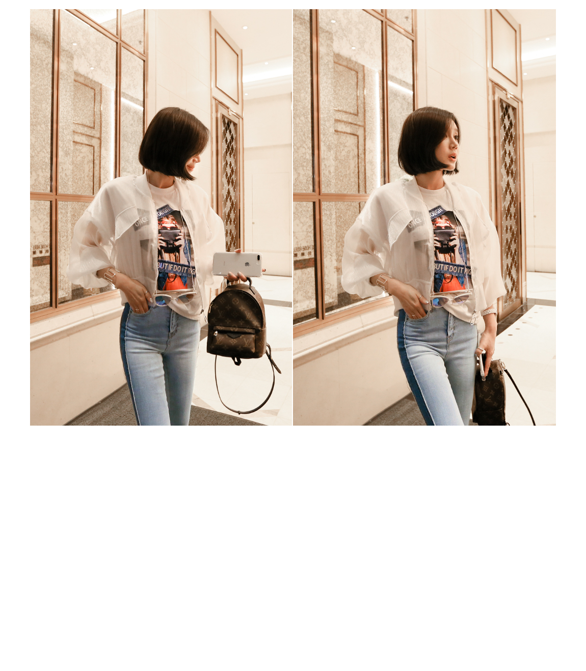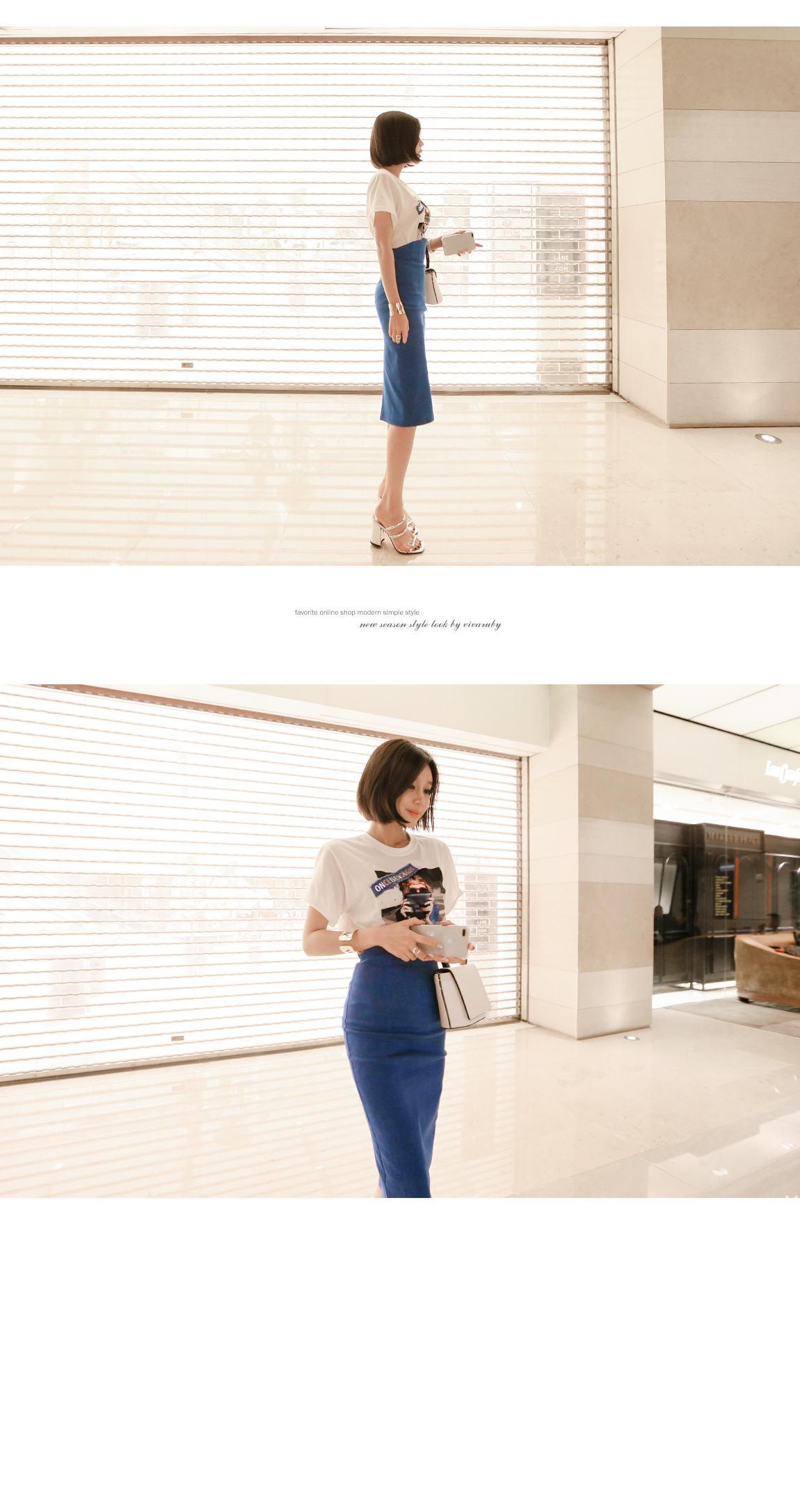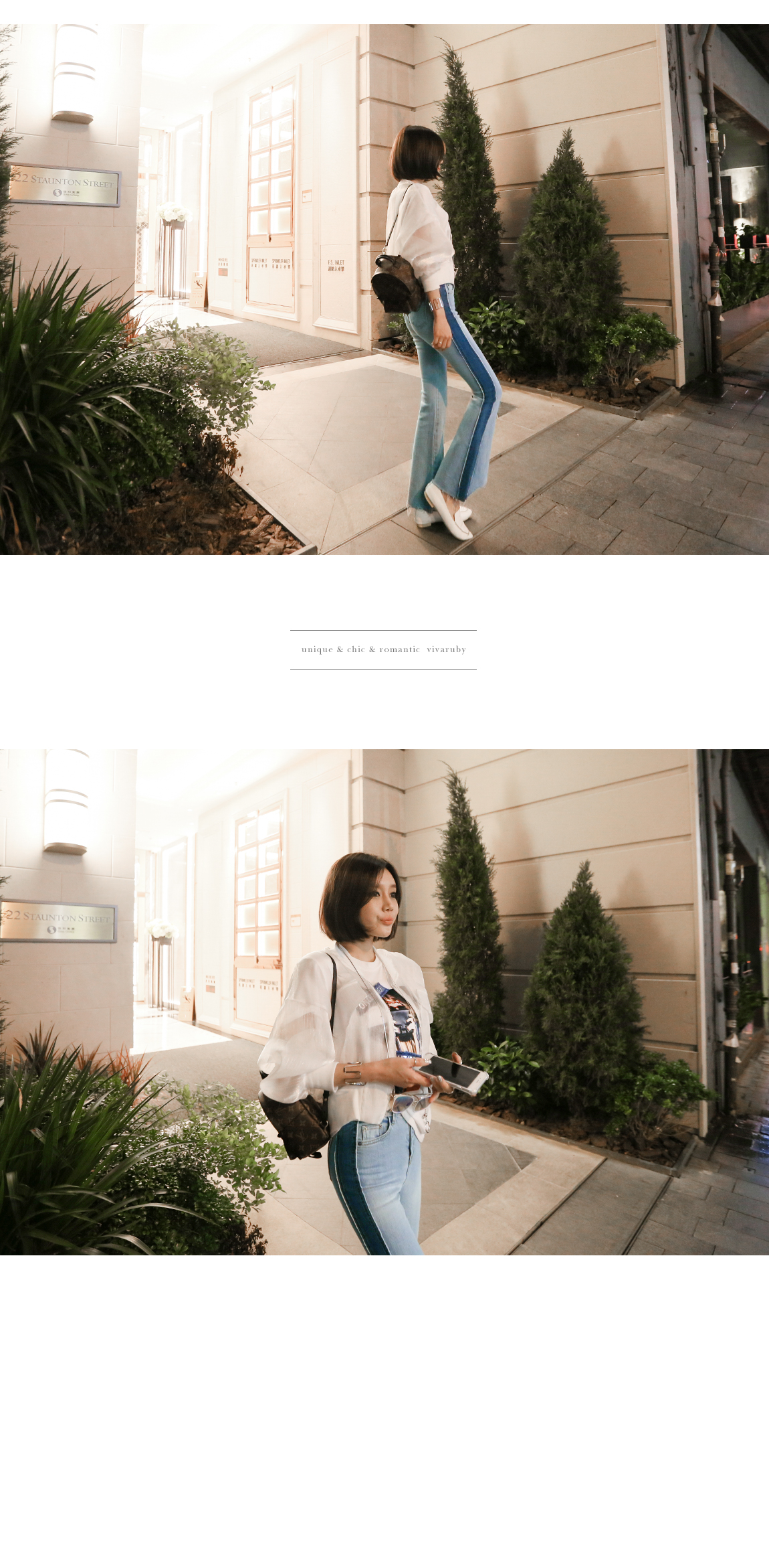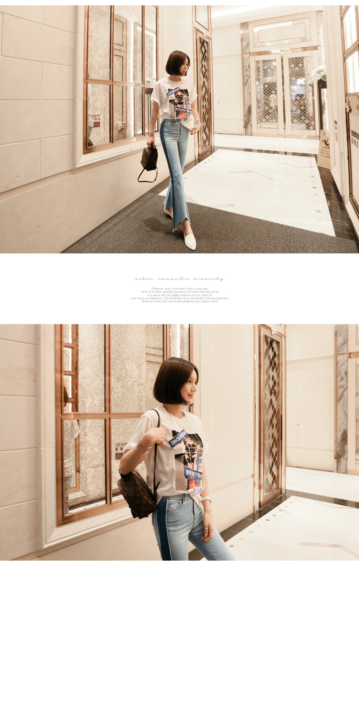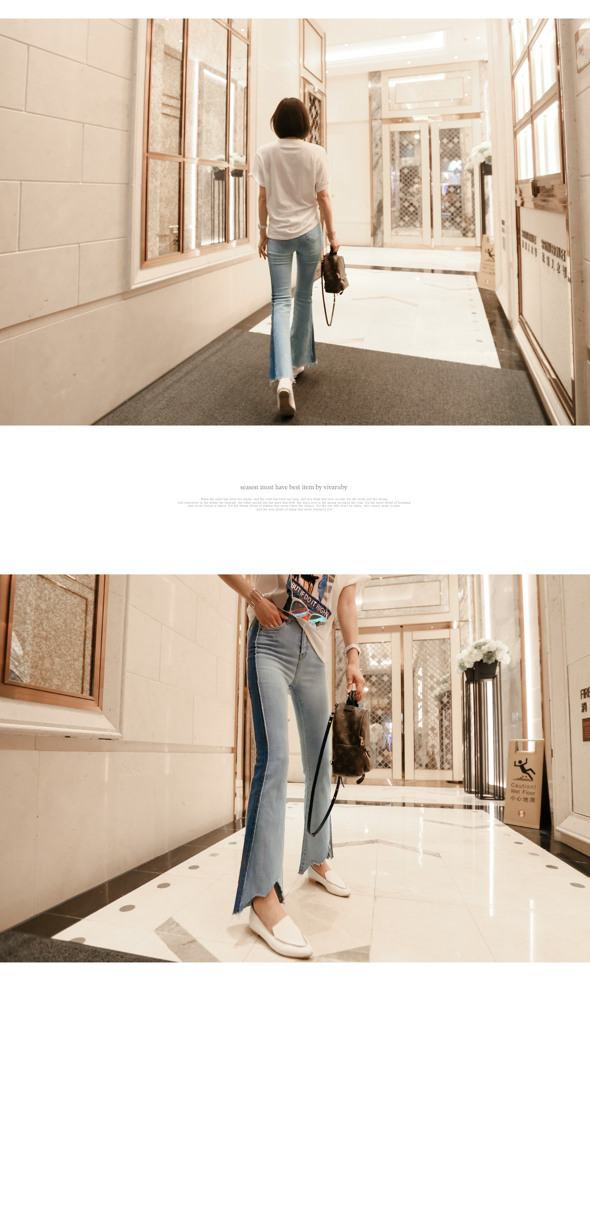 앞면의 데님 테이프와 프린팅 디테일로 유니크한 포인트를 주었어요