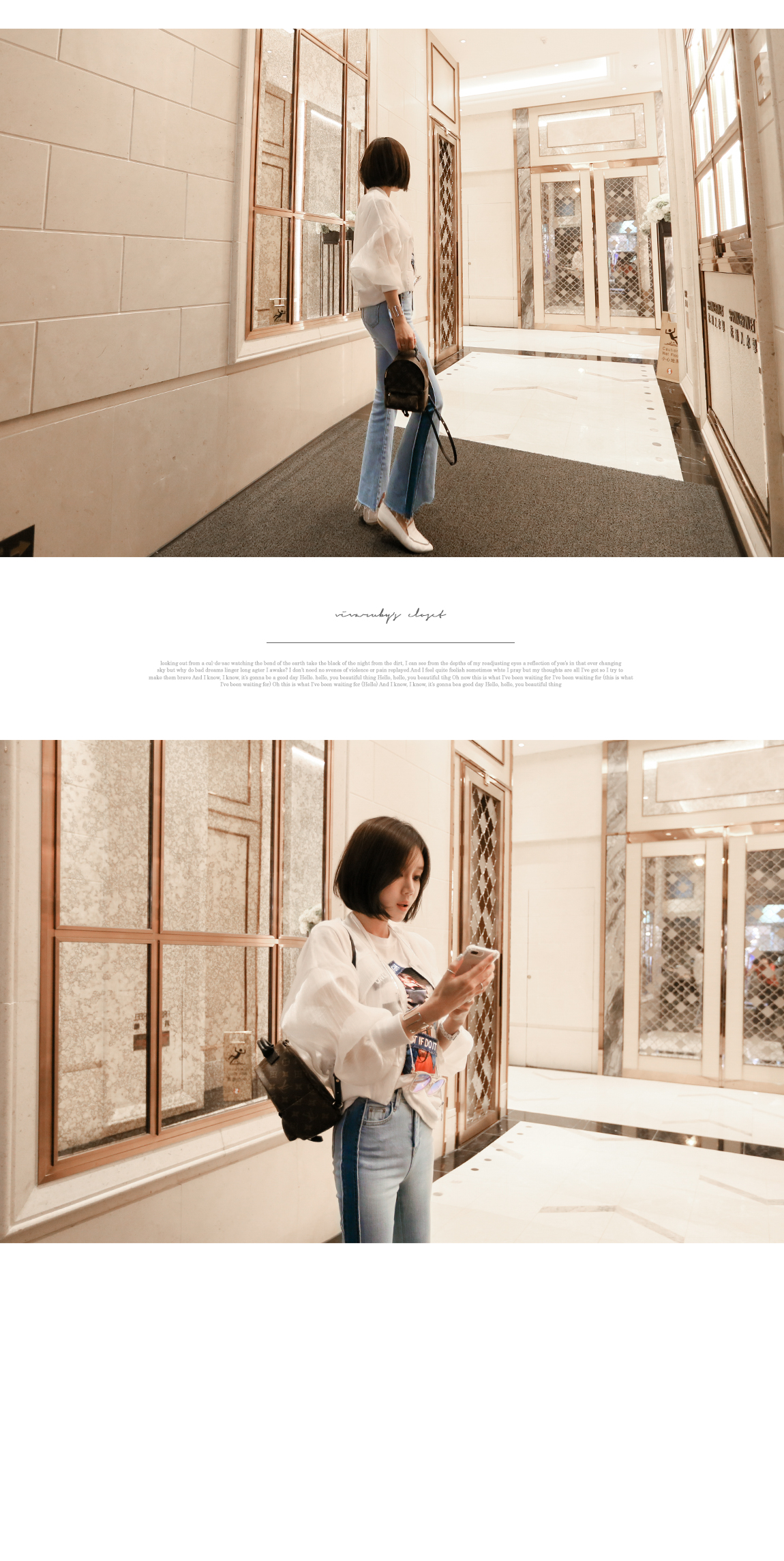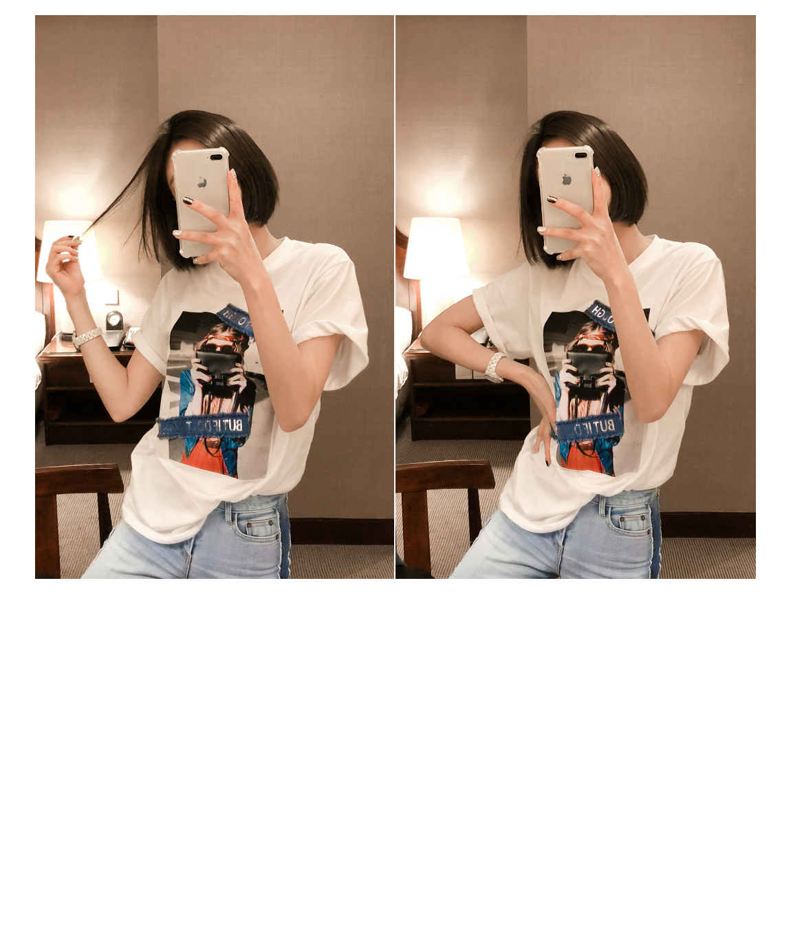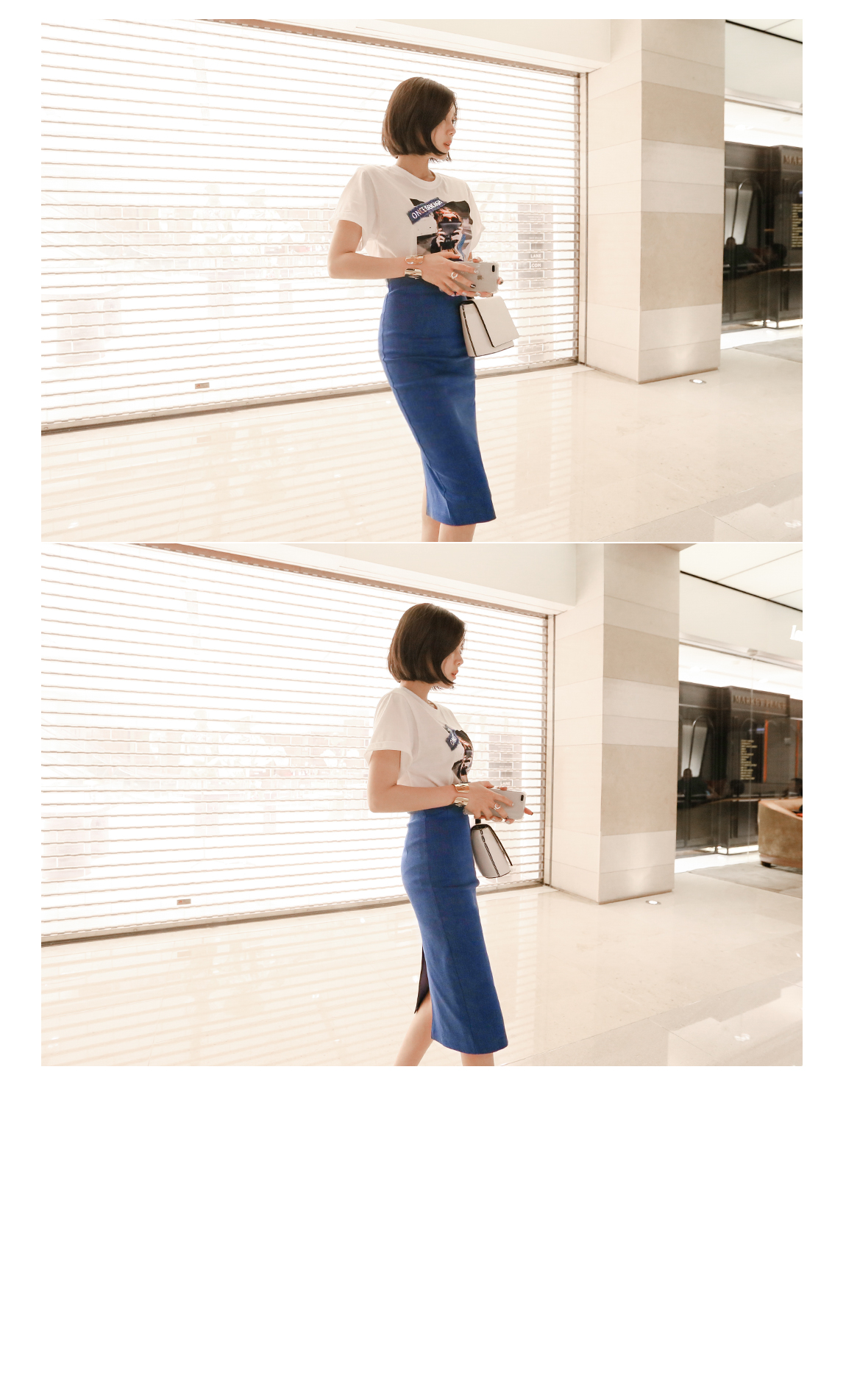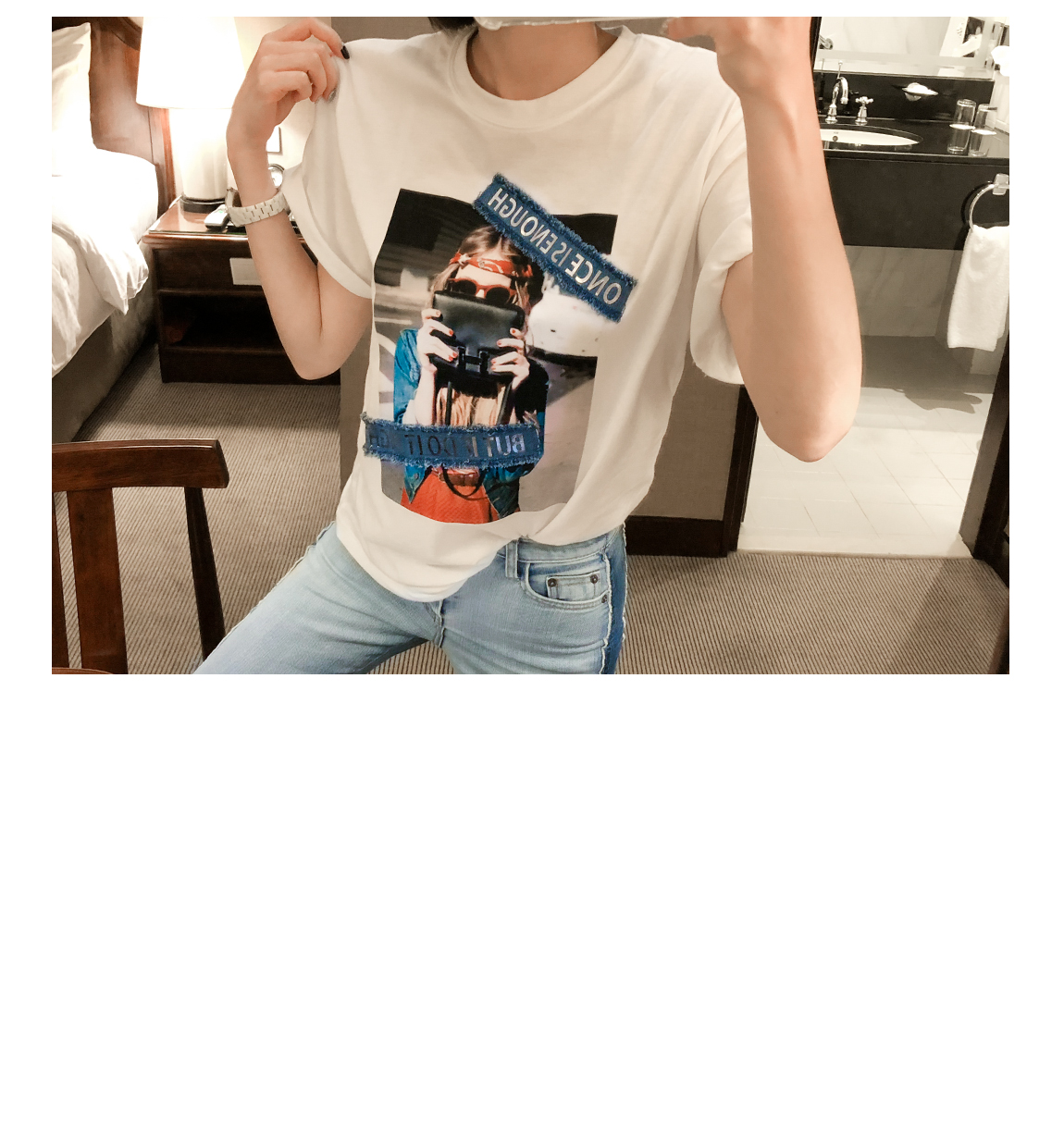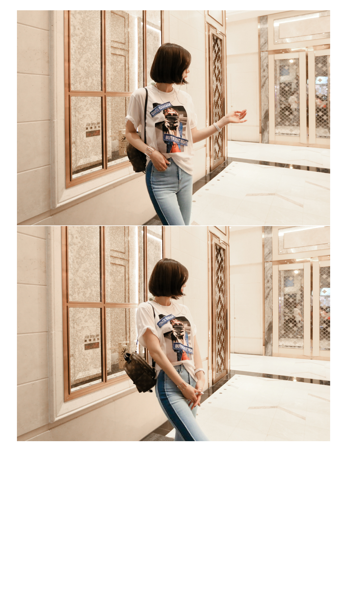 앞면의 데님 테이프와 프린팅 디테일로 유니크한 포인트를 주었어요