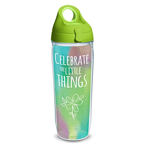 Tervis Celebrate The Little Things Wrap Water Bottle with Lime green Wb Lid, 24oz, Clear