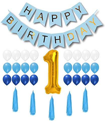 THE COLOURS ARE PERFECT: We deliberately chose bright colors for 1st birthday boy party - Gold number "1"; White, Blue and Light Blue balloons; Blue banner with golden letters; Blue tassels. The perfect 1st birthday gift for boy party.