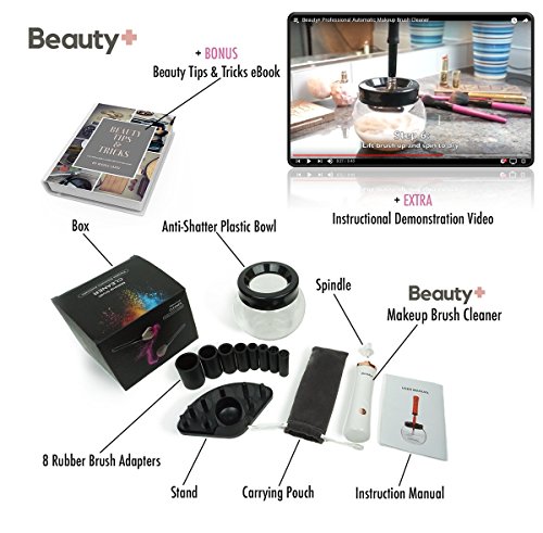 Beauty+ Professional Automatic Makeup Brush Cleaner Spinner + FREE BONUS eBOOK, Acne Prevention, Removes Foundation Concealer Powder Oils...
