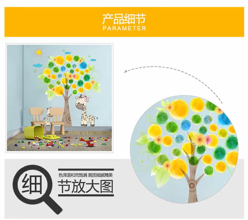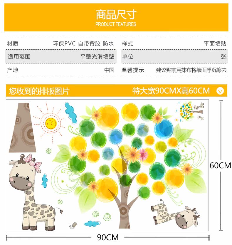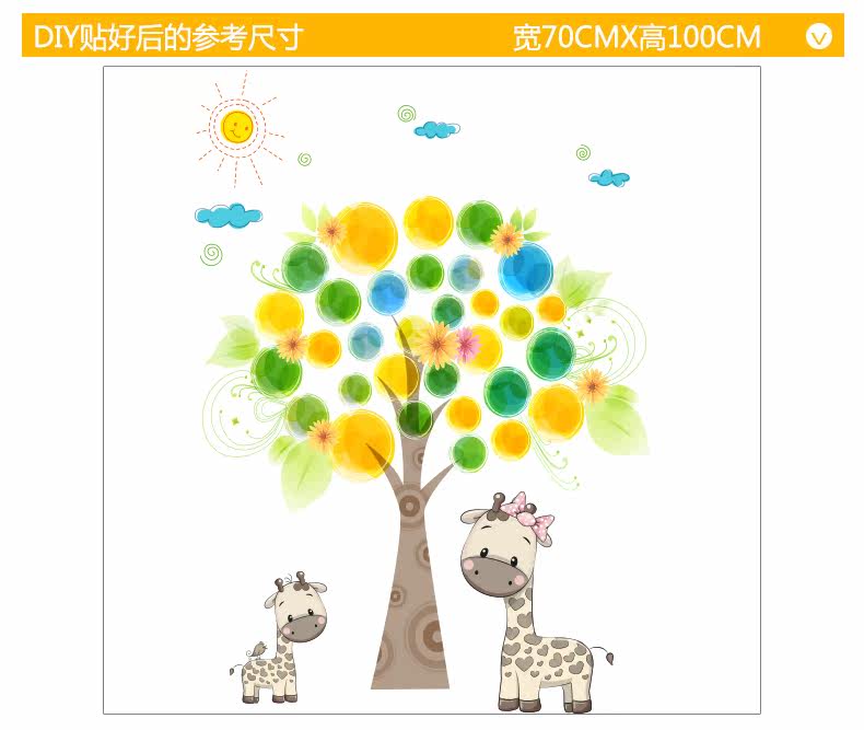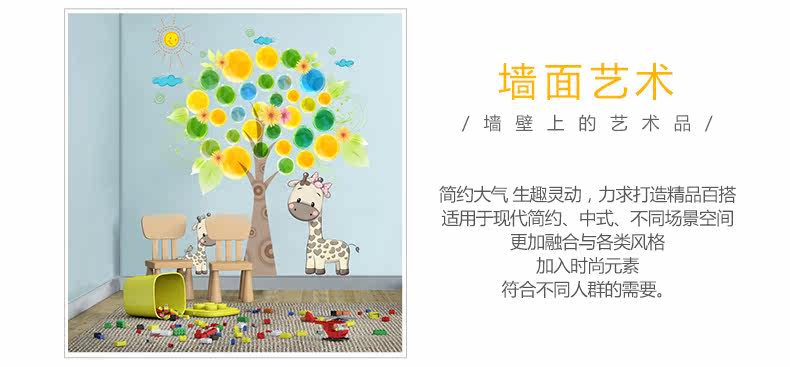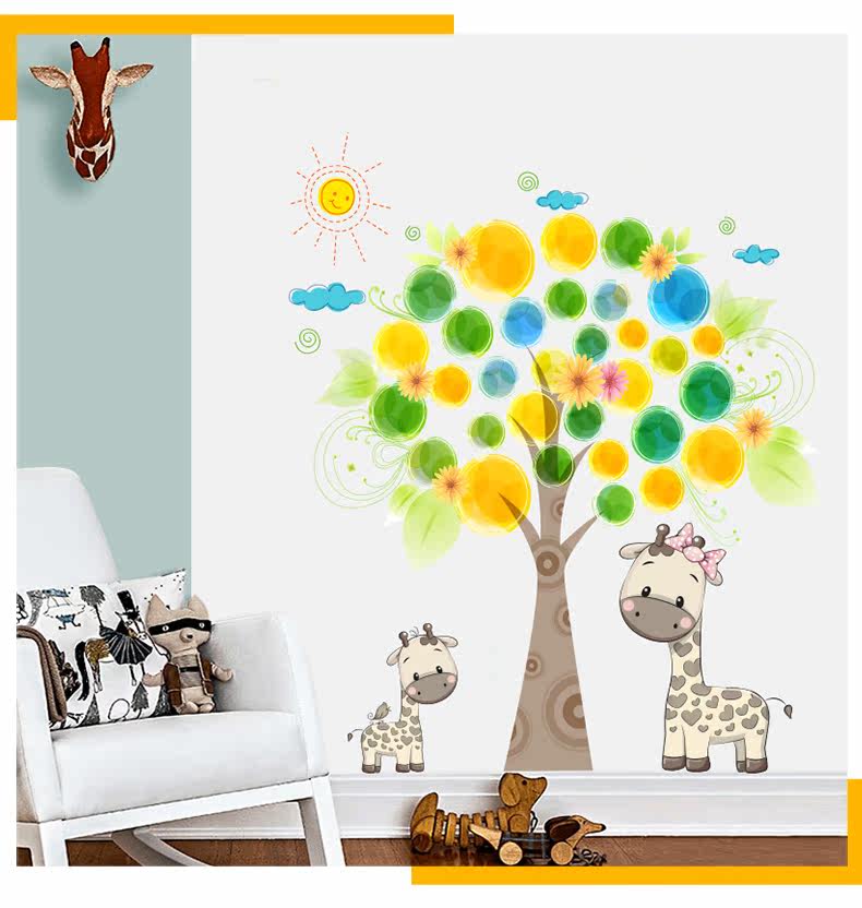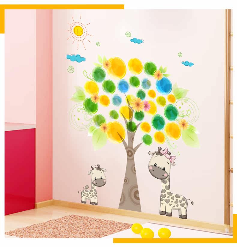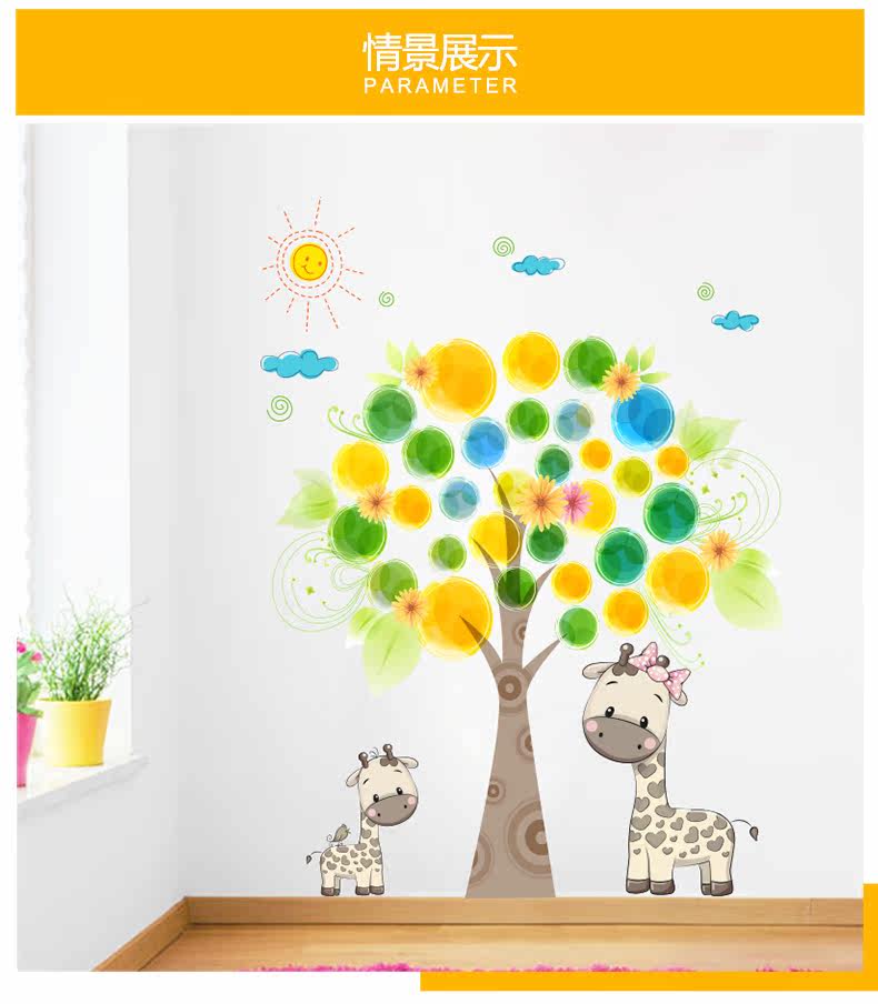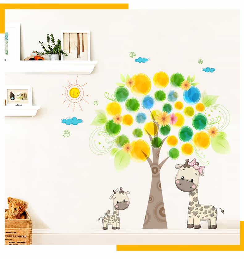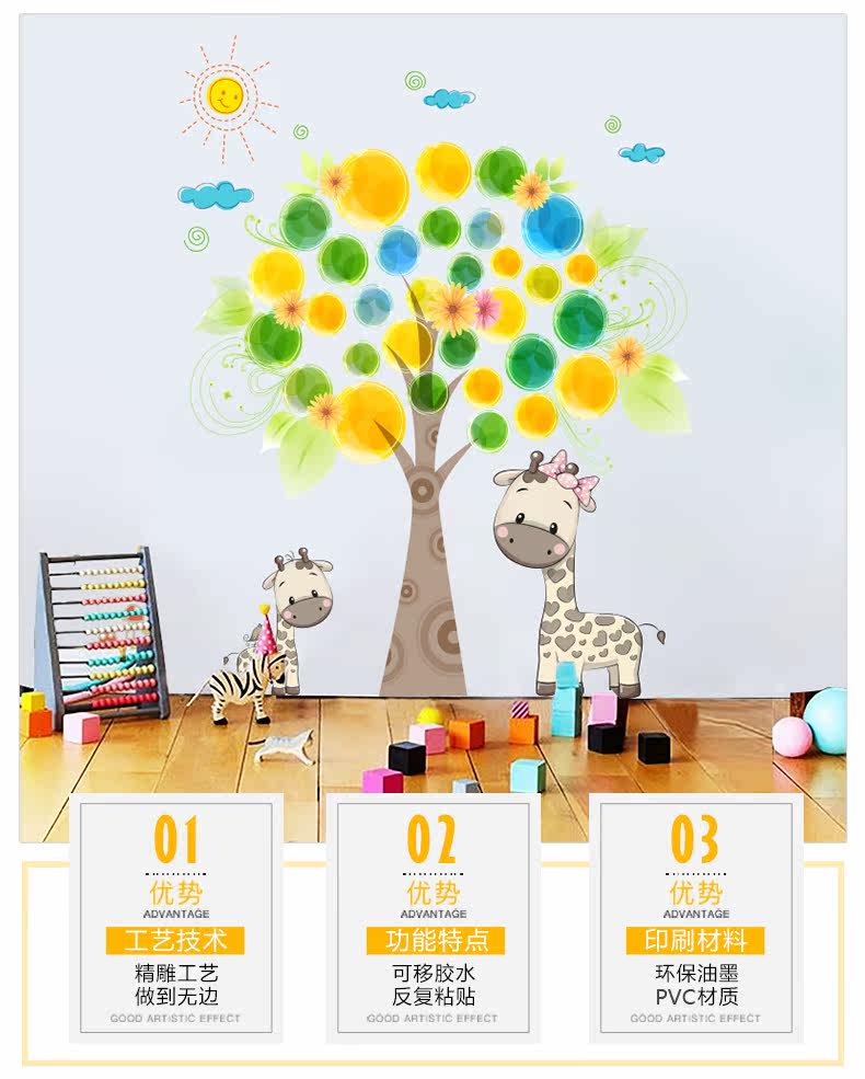卡通长颈鹿墙贴画幼儿园墙壁贴纸宝宝儿童房间装饰品自粘墙纸贴花