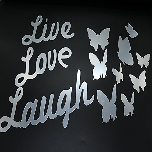 HUELE DIY Mirror Butterfly Live Love Laugh Wall Sticker Home Decor Art Decal Home Decoration Room Office DIY Wall Stickers Art Decor