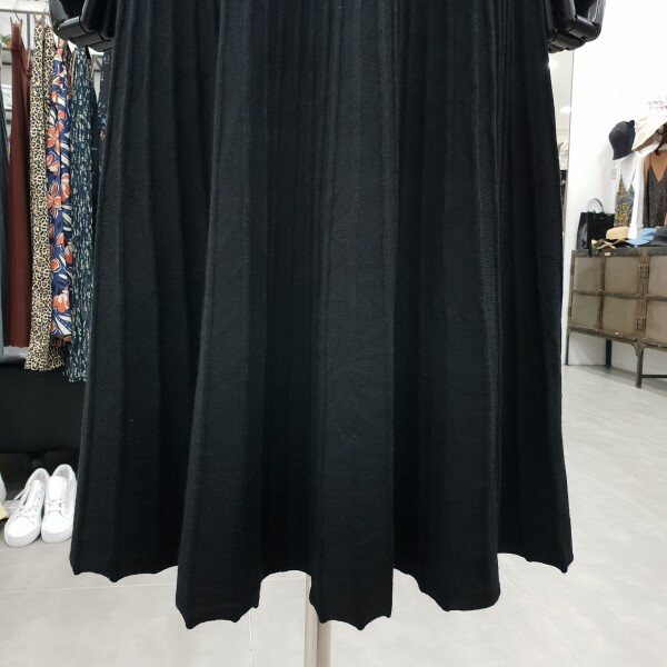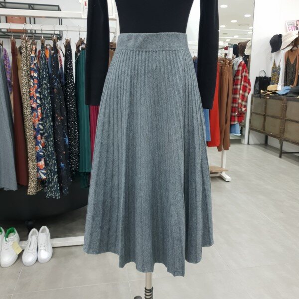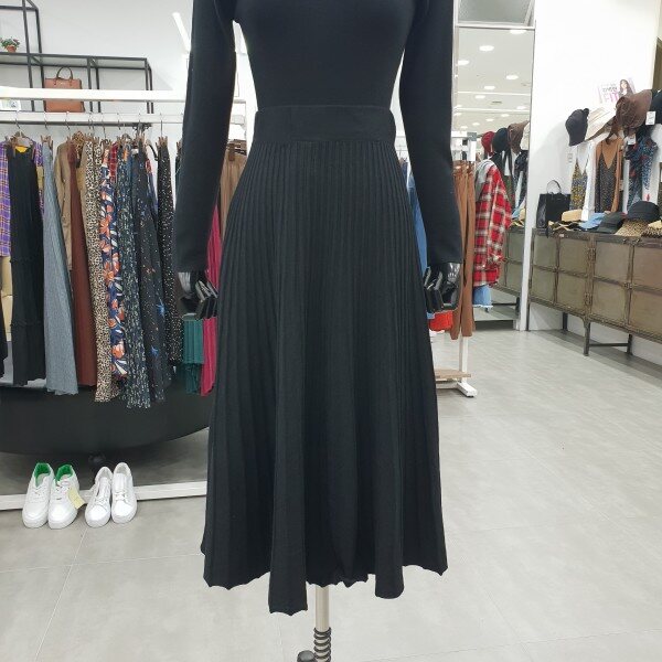 허리 밴딩처리로 간편하게 착용가능한 플리츠주름 니트원피스그레이,블랙 컬러구성